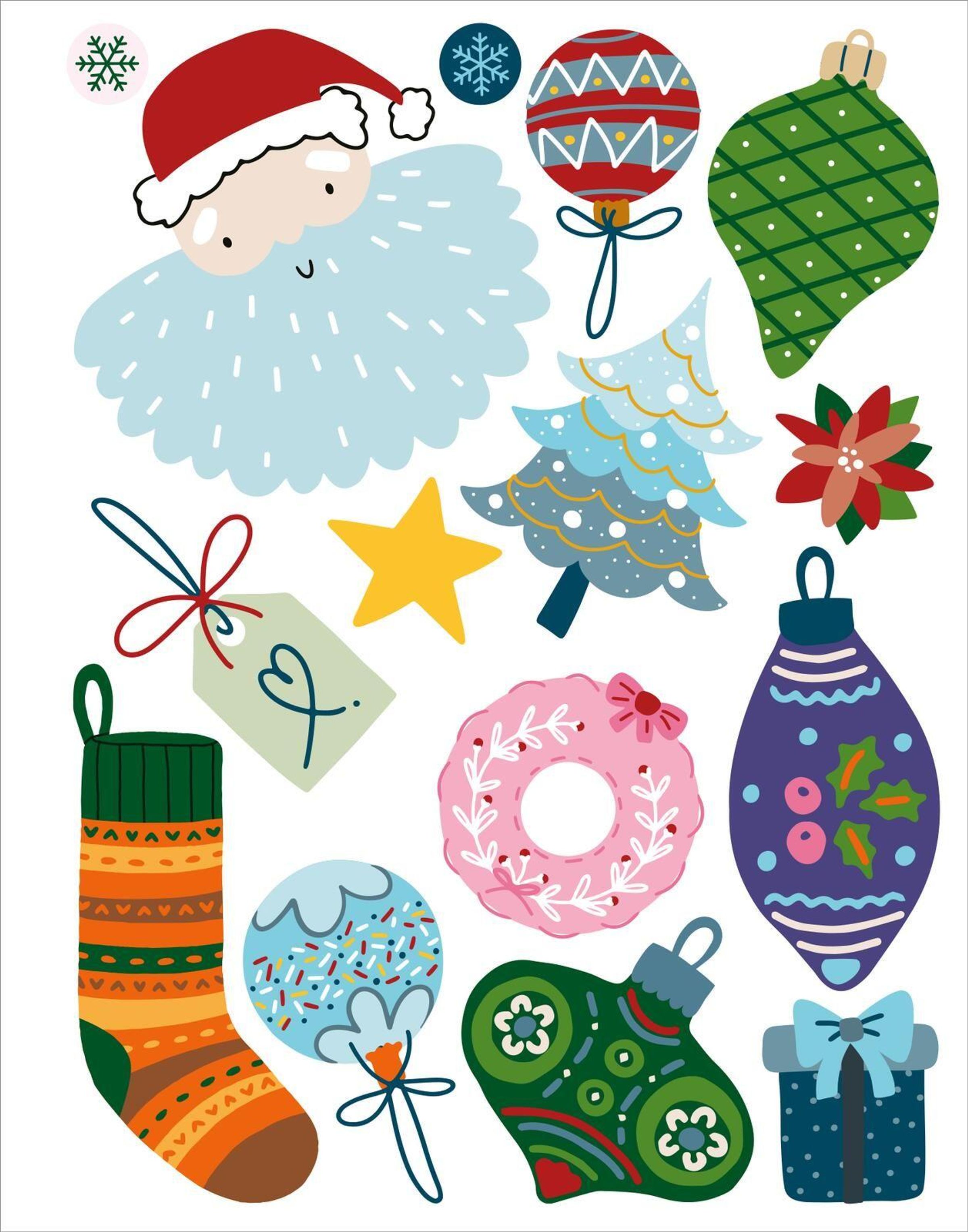 - Weihnachtsmotive: Kugeln, Sterne, Geschenke und Tannenbäume für stimmungsvolle Deko