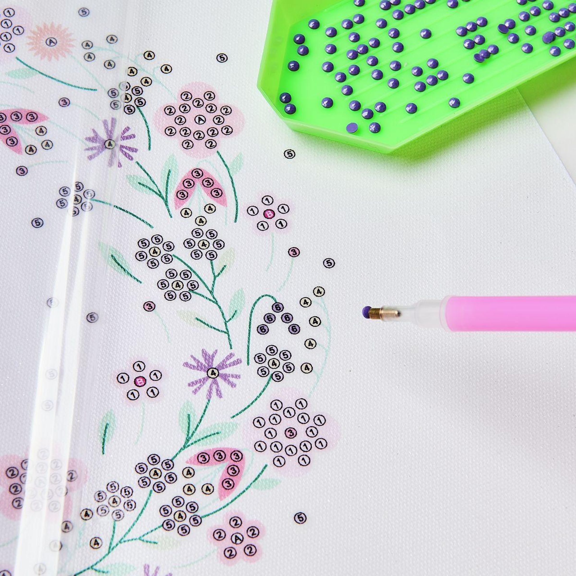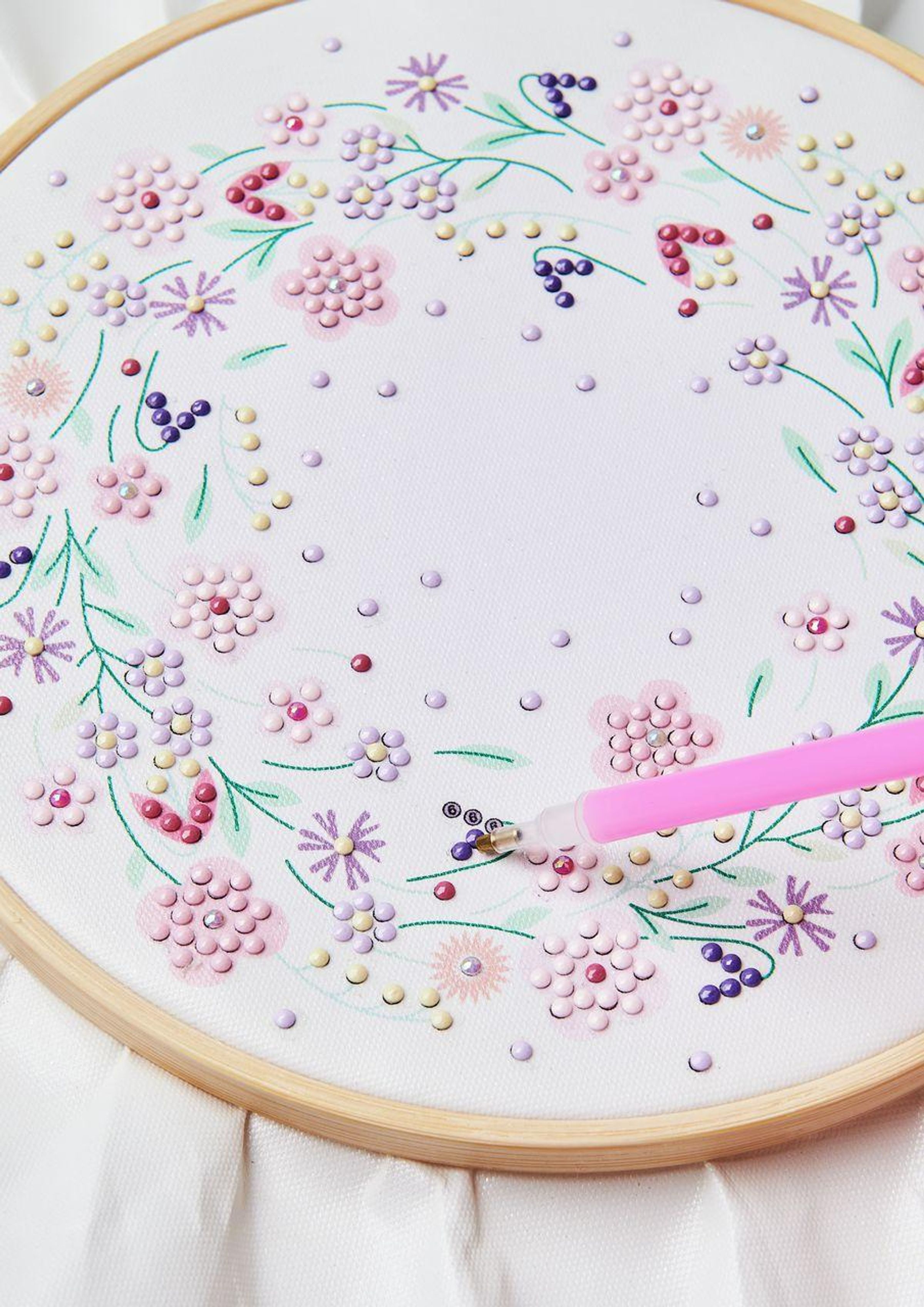 Diamond Painting DIY-Set, Bild auf Leinwand, Funkelnder Blumenkranz // Ø 20 cm. 14-teilig (Sonstige Artikel)