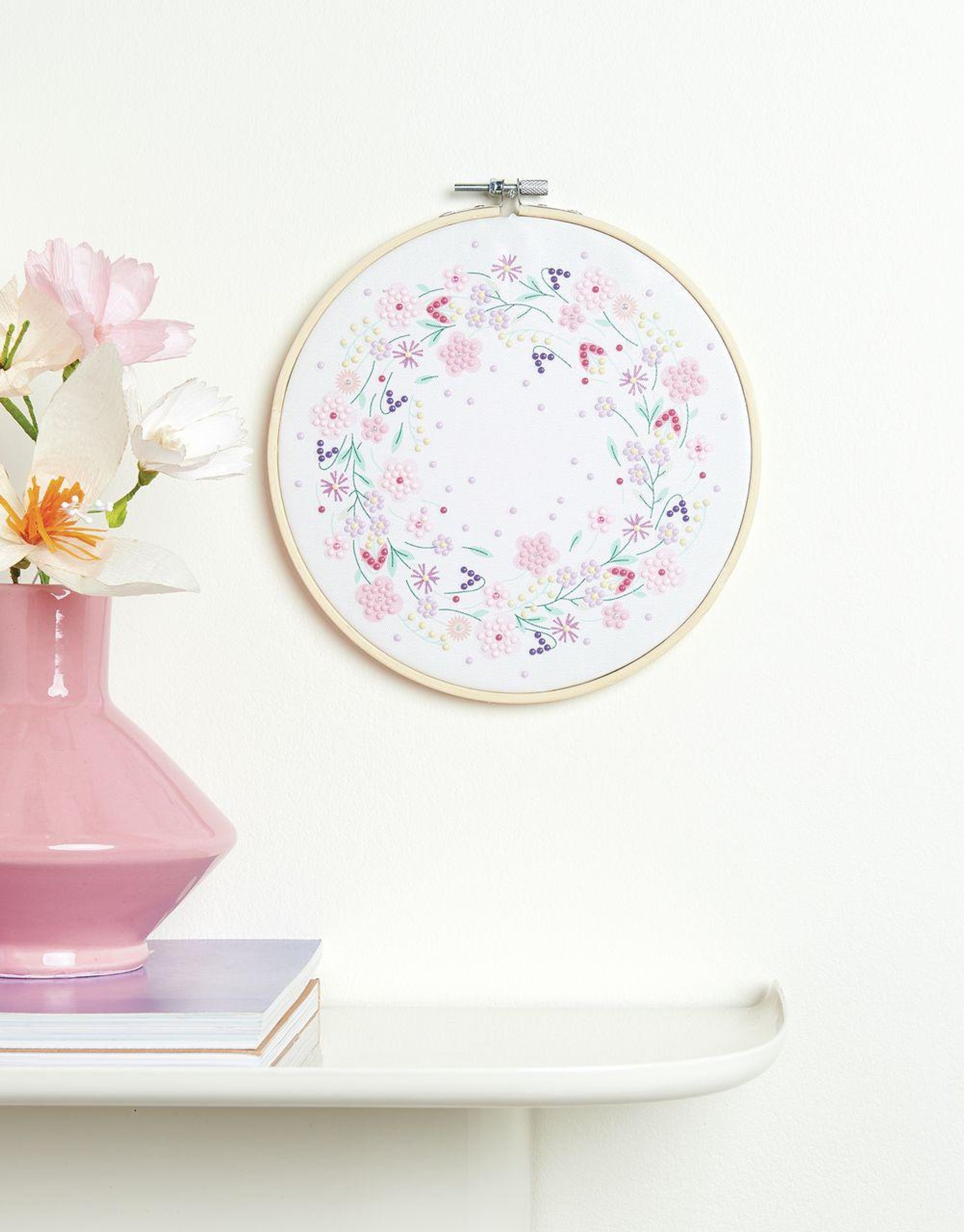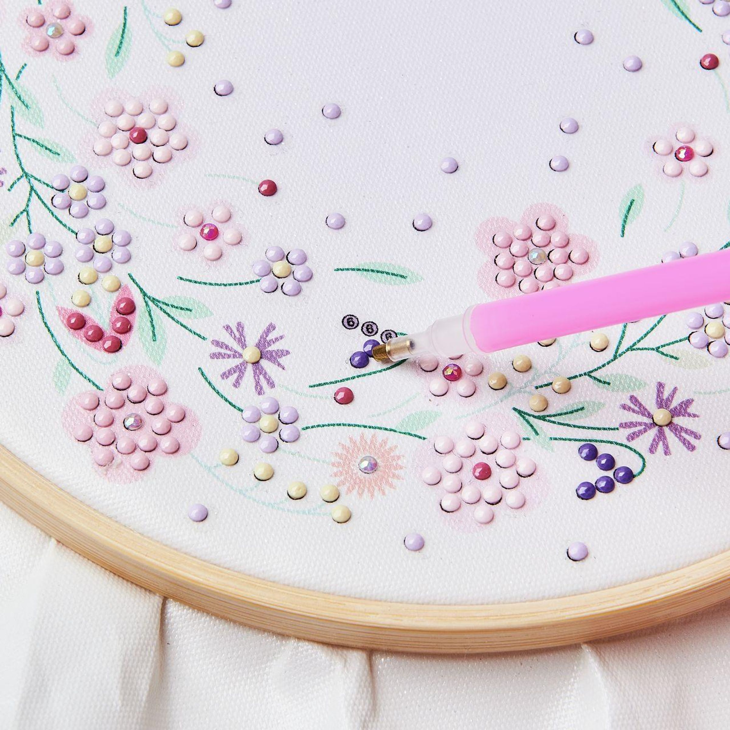 Diamond Painting DIY-Set, Bild auf Leinwand, Funkelnder Blumenkranz // Ø 20 cm. 14-teilig