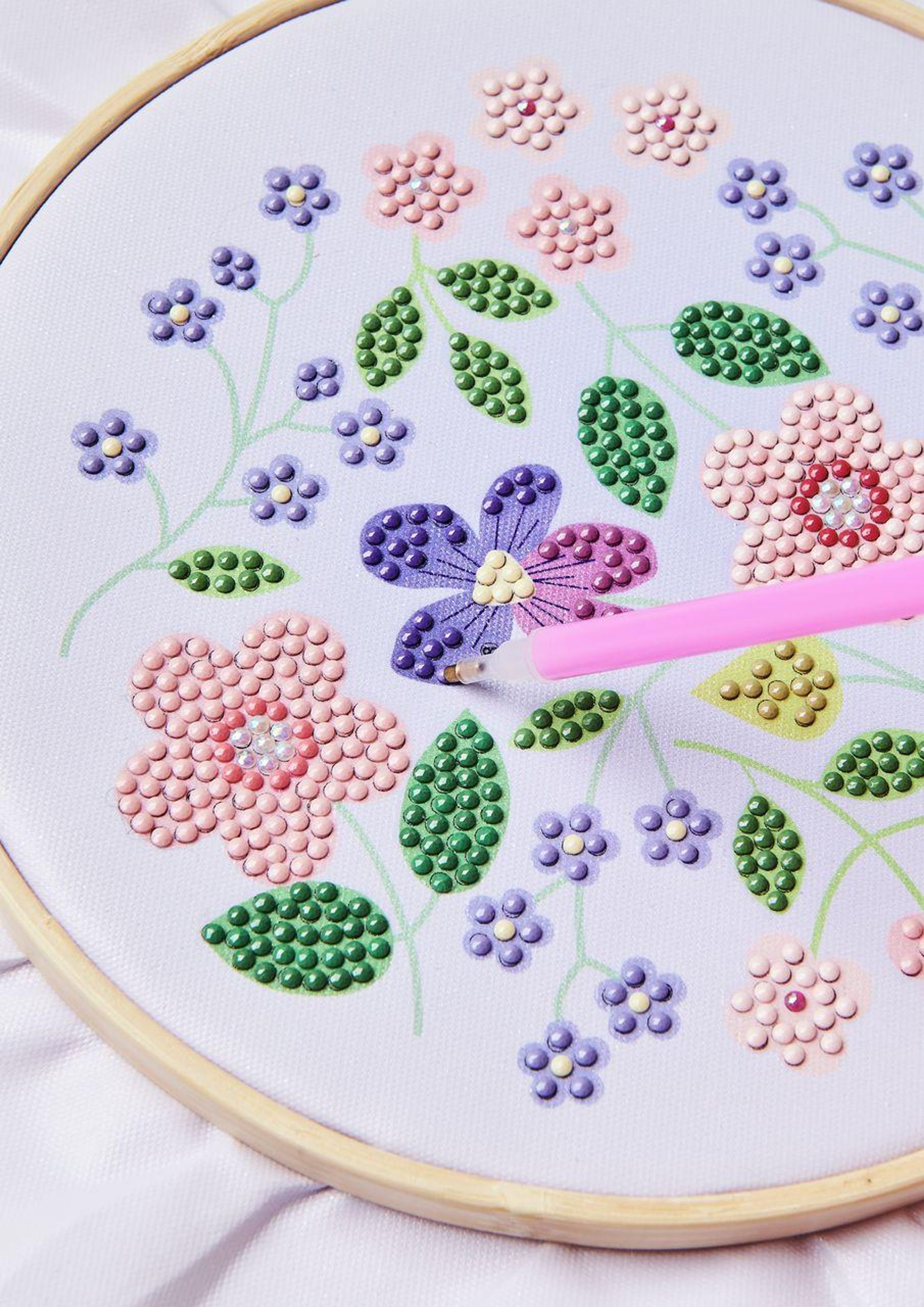 Diamond Painting DIY-Set, Bild auf Leinwand, Schimmernde Blumen // Ø 20 cm. 19-teilig (Sonstige Artikel)