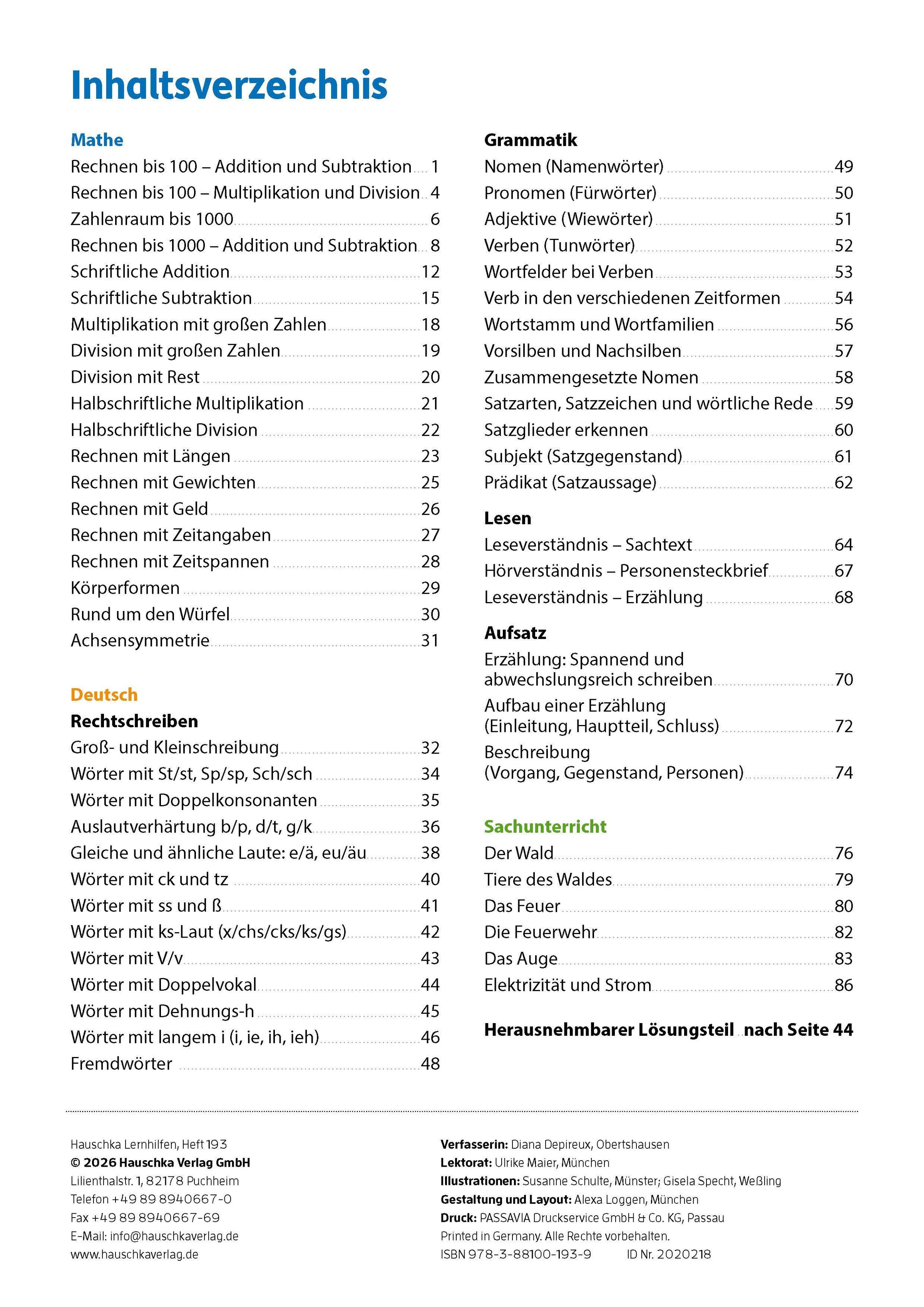 Die Übungshefte begleiten die Schülerinnen und Schüler von der 1. bis zur 4. Klasse. Jeder Titel schließt Mathe, Deutsch und den Sachunterricht ein. Die klar strukturierten Hefte bieten zu vielen Themen Verständnishilfen durch kindgerechte Merksätze und Übungen zum Festigen und Wiederholen der schulischen Lerninhalte. So können auch Lücken geschlossen werden und die Kinder fühlen sich gut auf die Herausforderungen der Schule vorbereitet. Mit Hilfe des Lösungsteils kann die Arbeit selbstständig überprüft werden. Alle Übungshefte dieser Reihe wurden von erfahrenen Pädagoginnen und Pädagogen entwickelt und mit Kindern umfassend getestet.