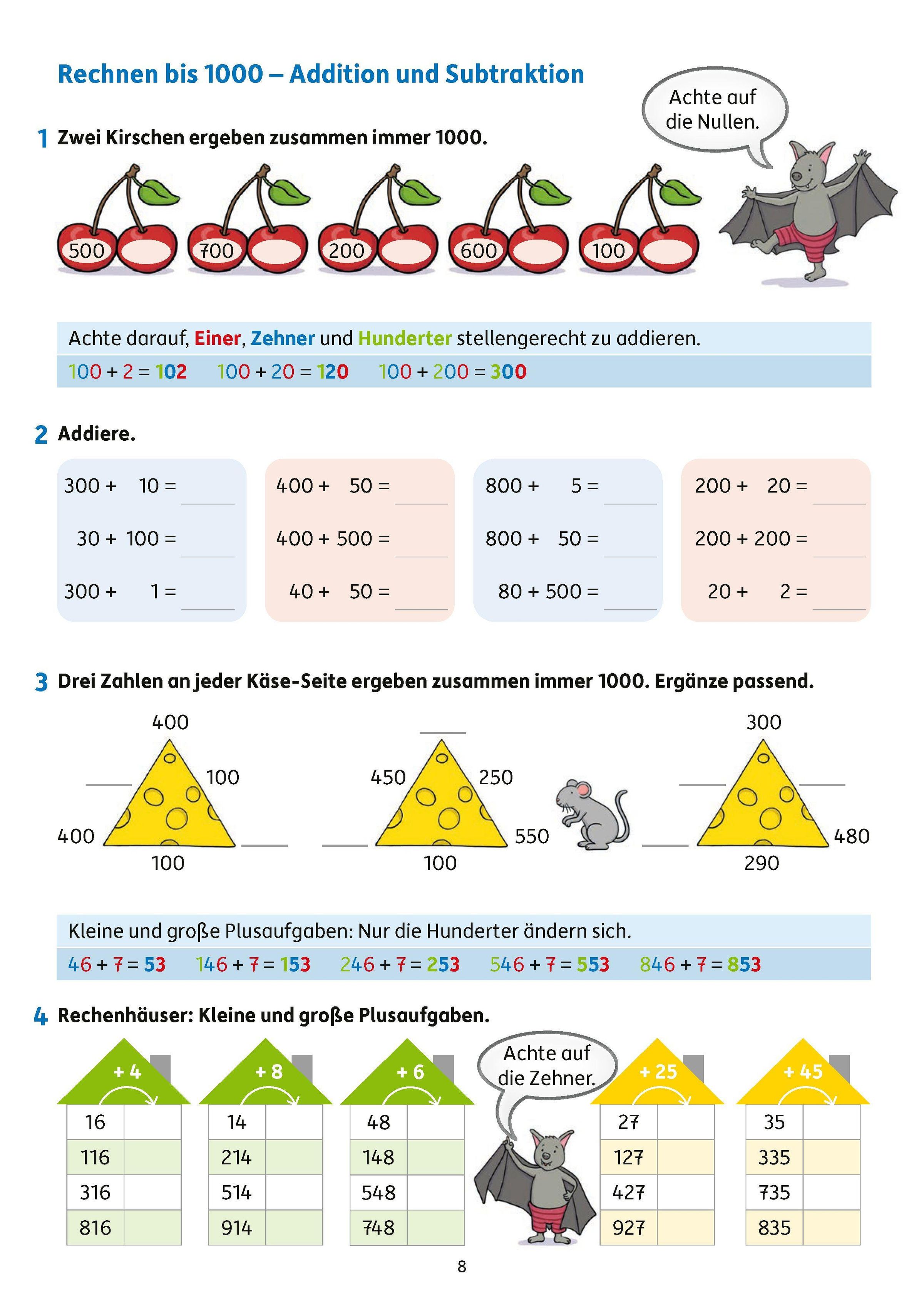 ✅ Mathe: Zahlenraum bis 1000, Addition, Subtraktion, Multiplikation und Division, Achsensymmetrie und Körperformen, Rechnen mit Größen