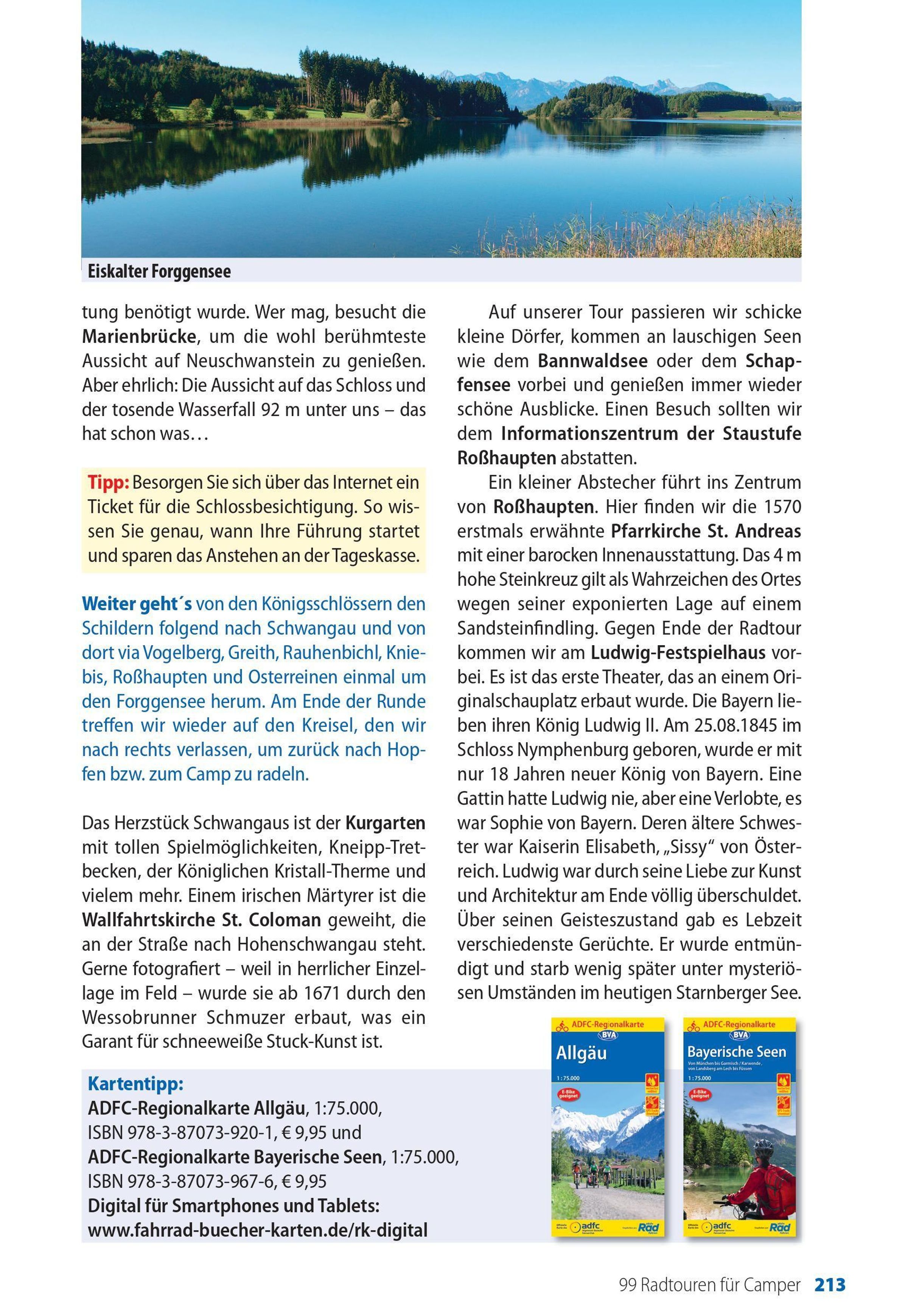 Bayern 85 Rundtour Altmühlsee - Ornbau 86 Streckentour Altmühlsee - Dollnstein 87 Rundtour Altmühlsee - Brombachsee 88 Rundtour Rothenburg - Taubertal 89 Streckentour Rothenburg - Bad Windsheim 90 Rundtour Waging am See - Taching 91 Rundtour Waging am See - Laufen 92 Rundtour um den Hopfensee 93 Rundtour Hopfensee - Füssen 94 Rundtour um den Forggensee 95 Rundtour um Garmisch-Partenkirchen 96 Streckentour Garmisch-Partenkirchen - Ehrwald 97 Rundtour Garmisch-Partenkirchen - Eibsee 98 Rundtour Barmsee - Krün 99 Rundtour Tennsee - Mittenwald