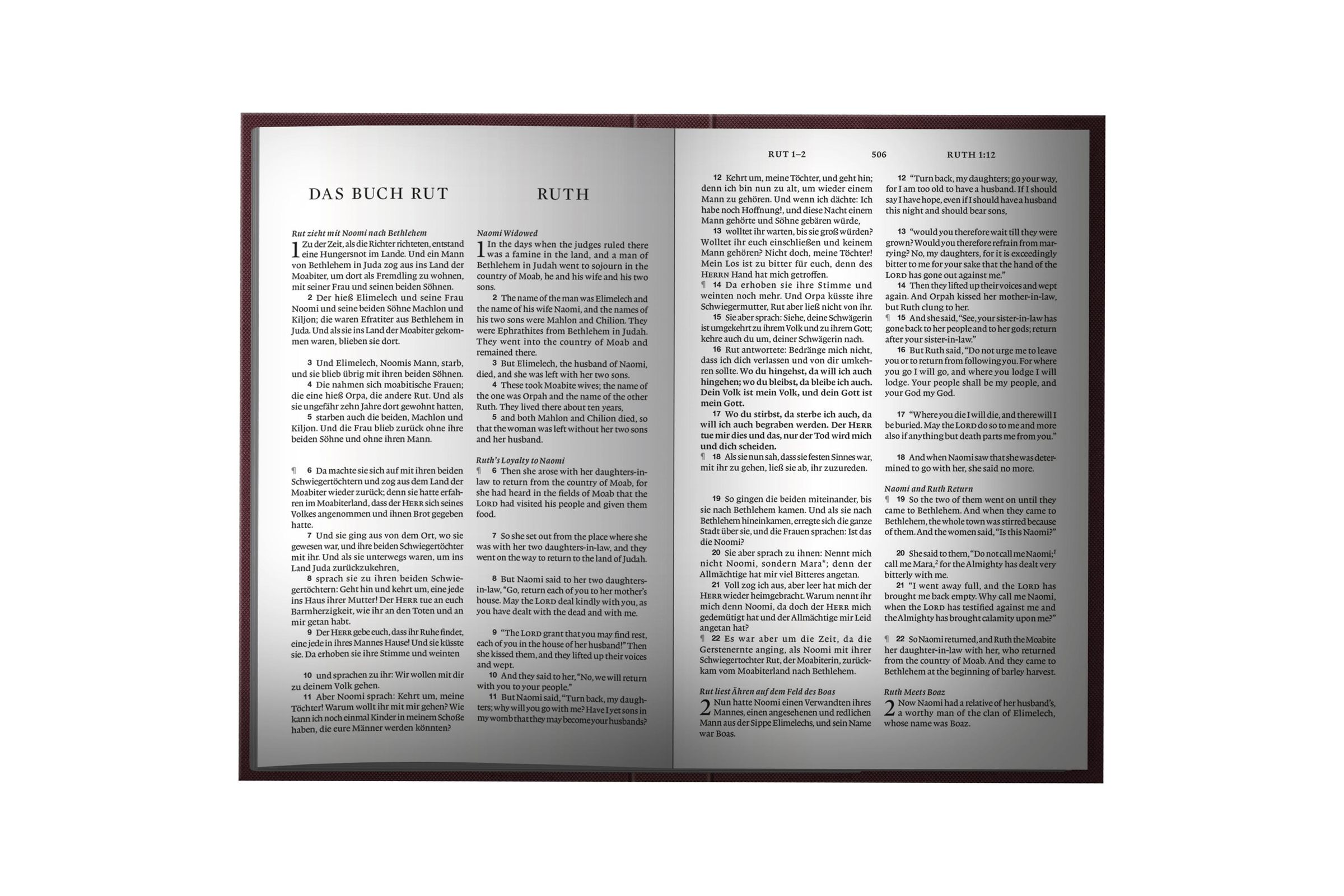Diese zweisprachige Bibel verbindet die revidierte Lutherbibel 2017 und die English Standard Version (ESV). Die Texte beider Ausgaben sind parallel nebeneinander gedruckt. So ist ein direkter Vergleich beider Texte leicht möglich. Umfangreiche Anmerkungen zu beiden Bibelausgaben vervollständigen diese Ausgabe.