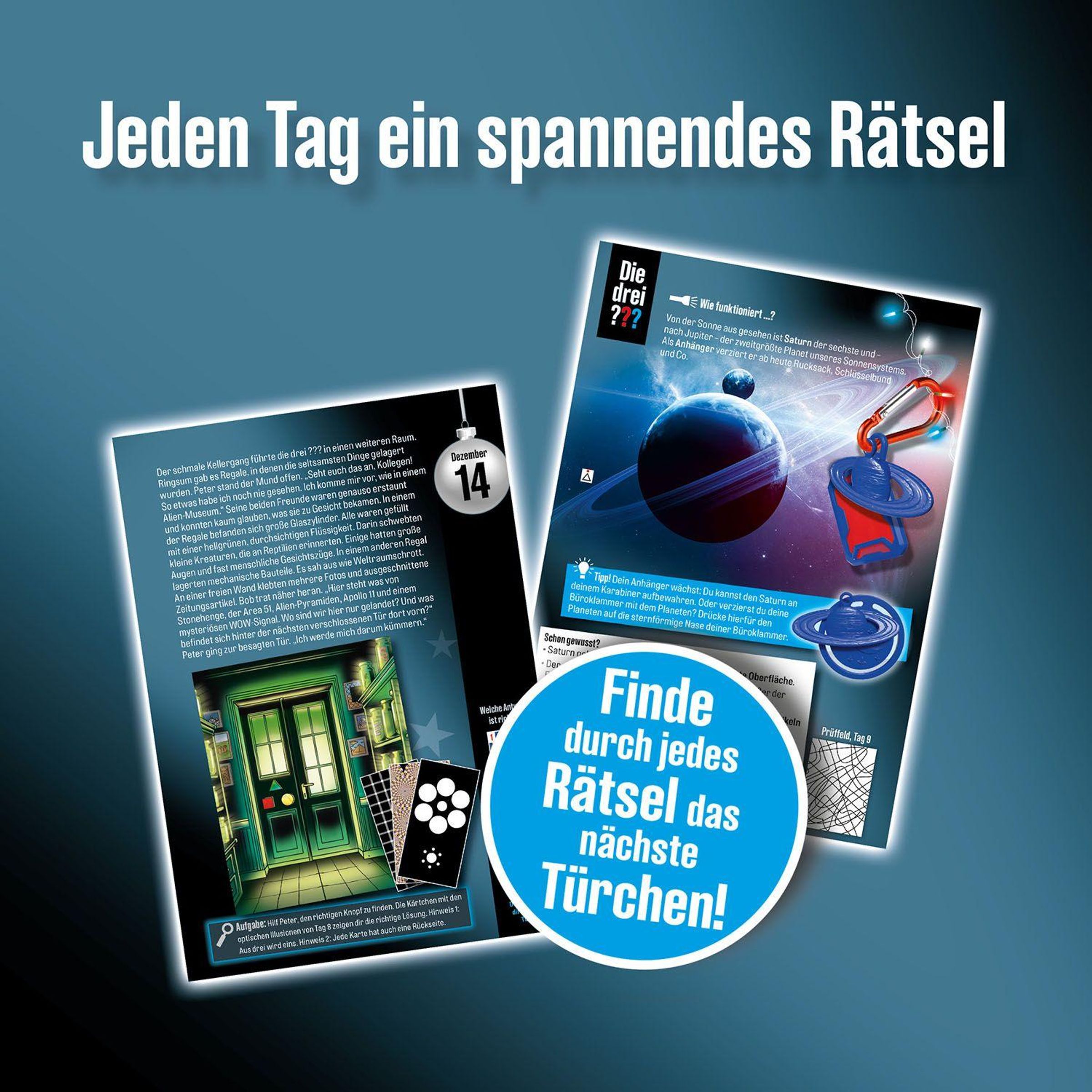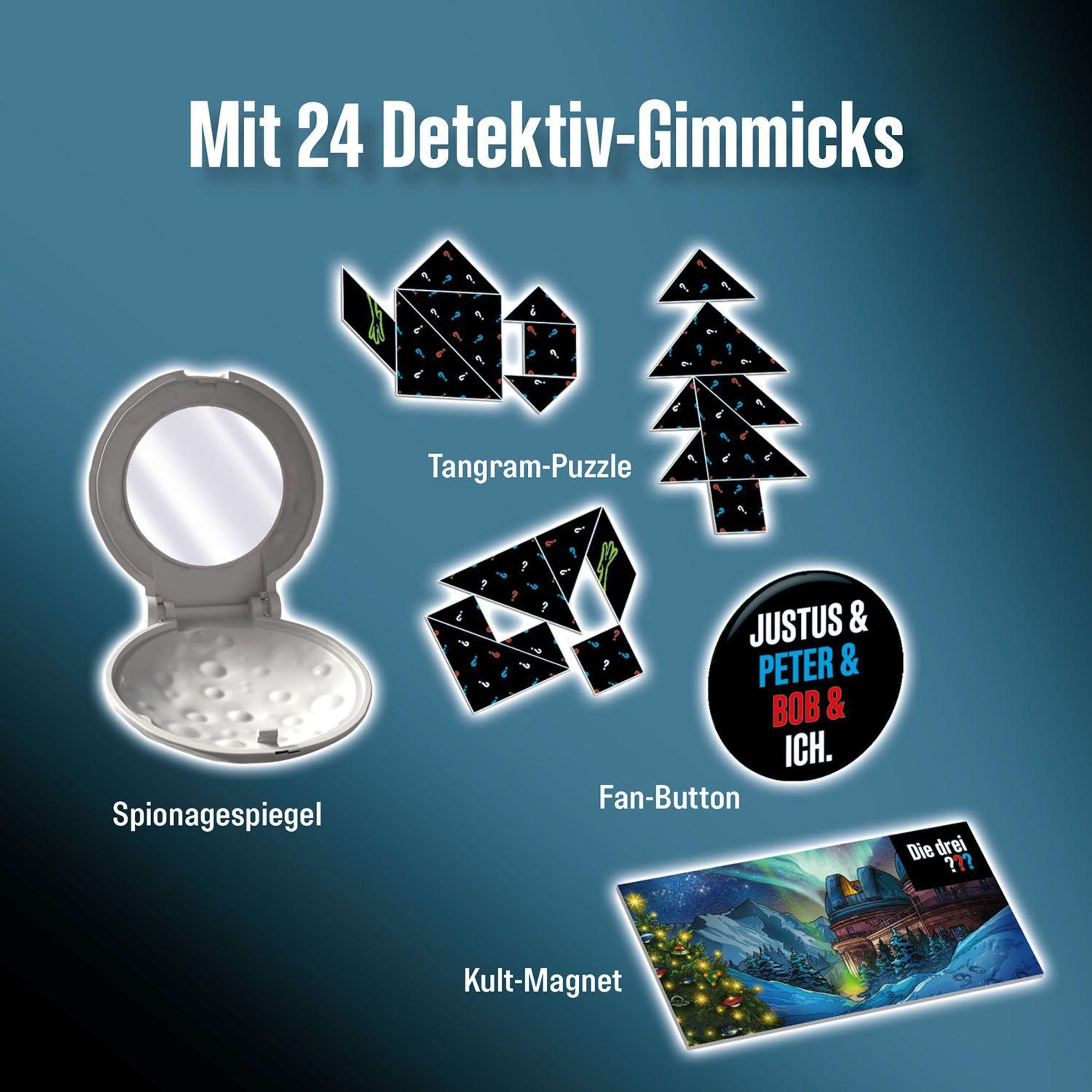 Aliens in der Sternwarte Als dort immer mehr seltsame Objekte auftauchen ist für Justus, Peter und Bob klar, dass es hier nicht mit rechten Dingen zugehen kann. 24 Tage, Kapitel für Kapitel, entwickelt sich die spannende Detektiv-Geschichte. Jeden Tag gilt es ein Rätsel zu lösen, welches zum nächsten Türchen führt. Ein interaktives Rätselerlebnis für Detektiv- und Rätsel-Fans ab acht Jahren mit 24 Detektiv-Überraschungen!