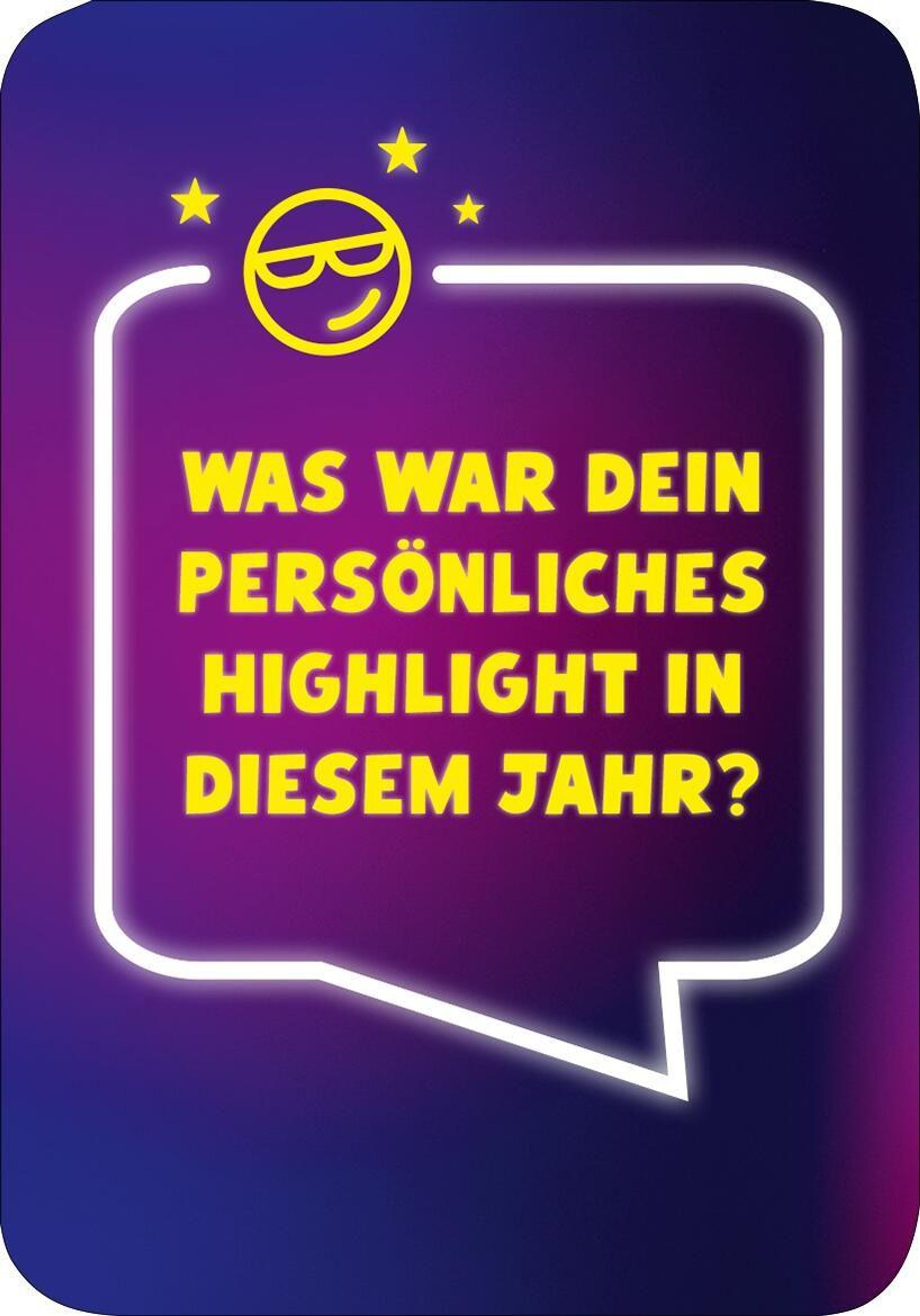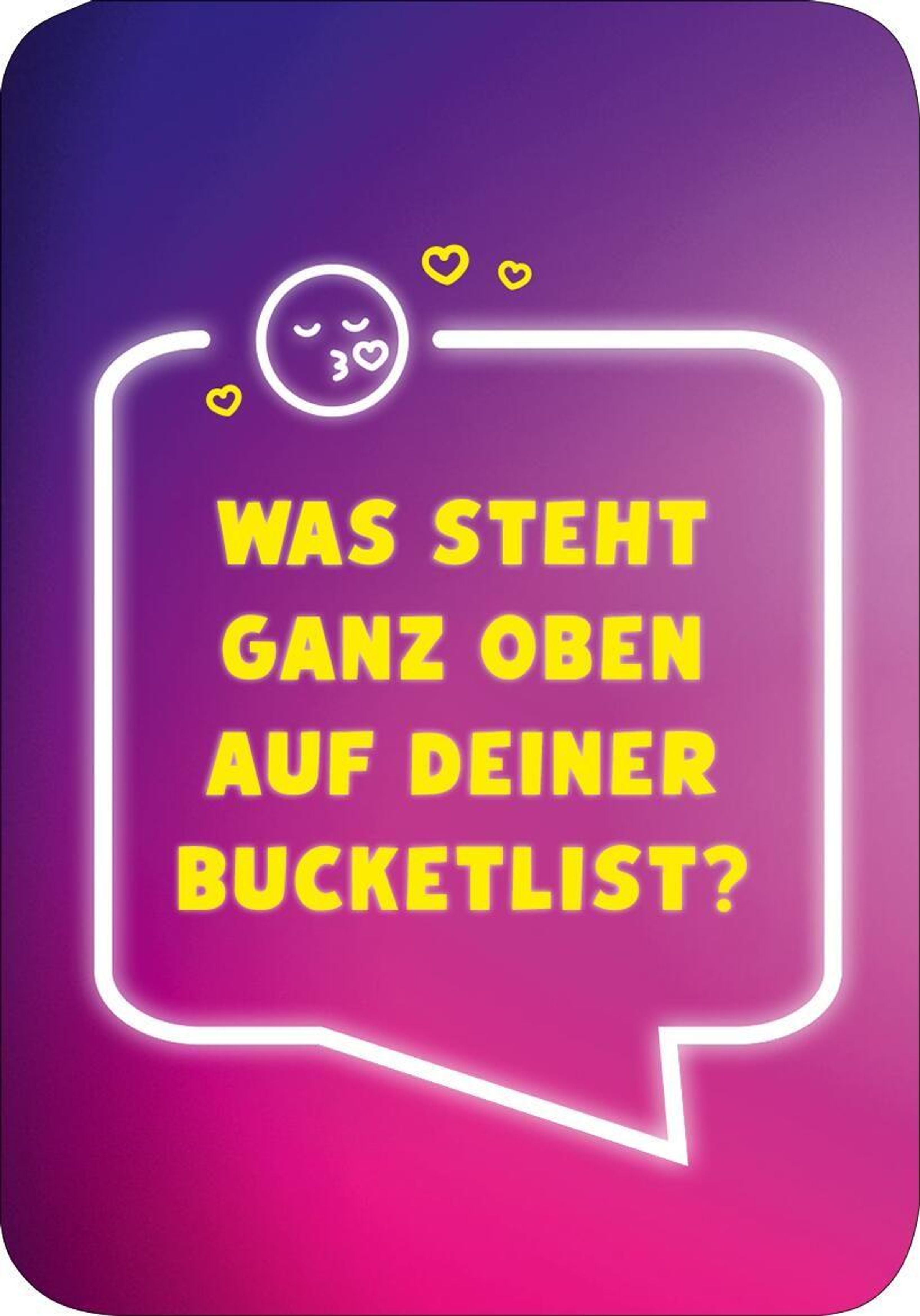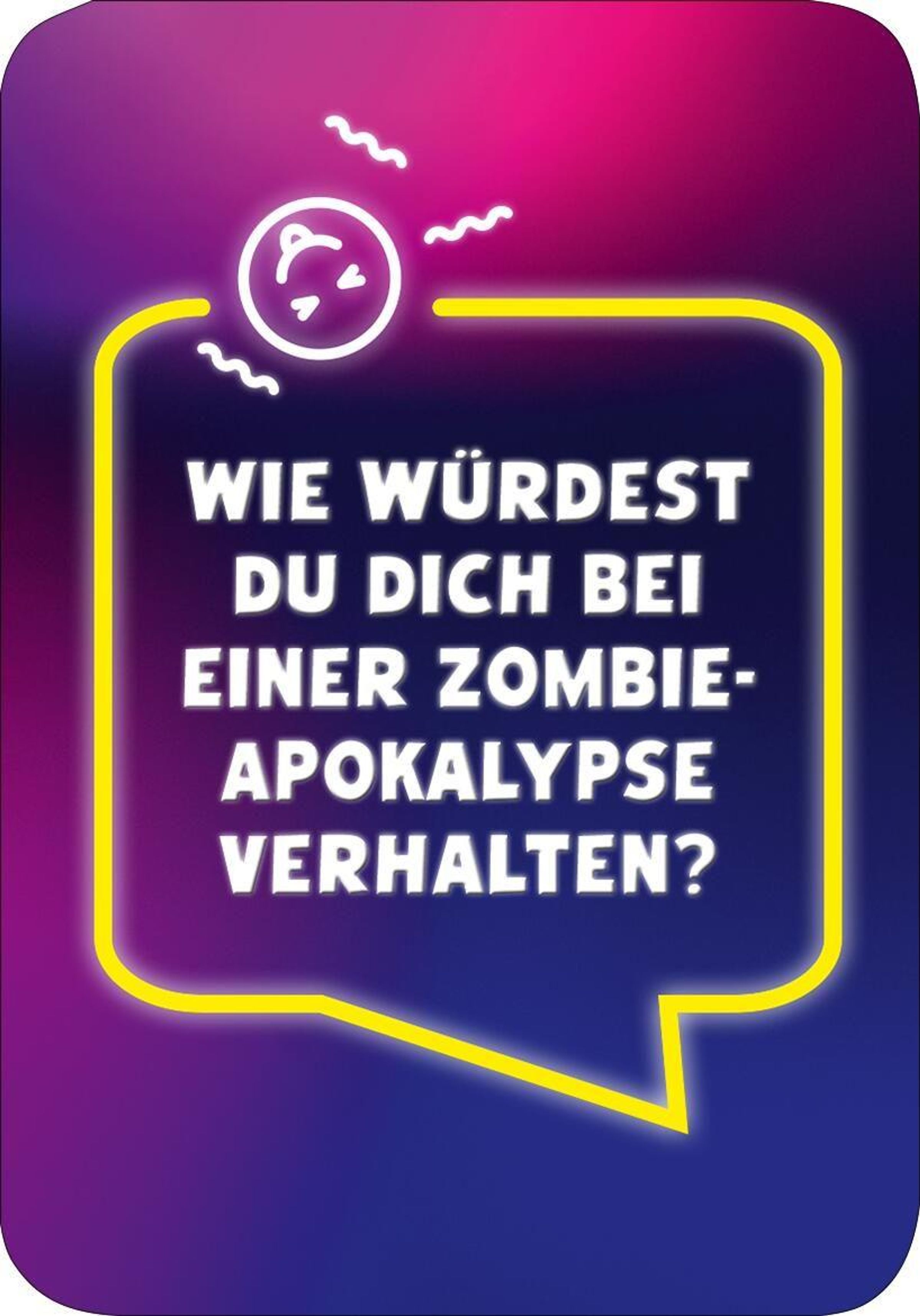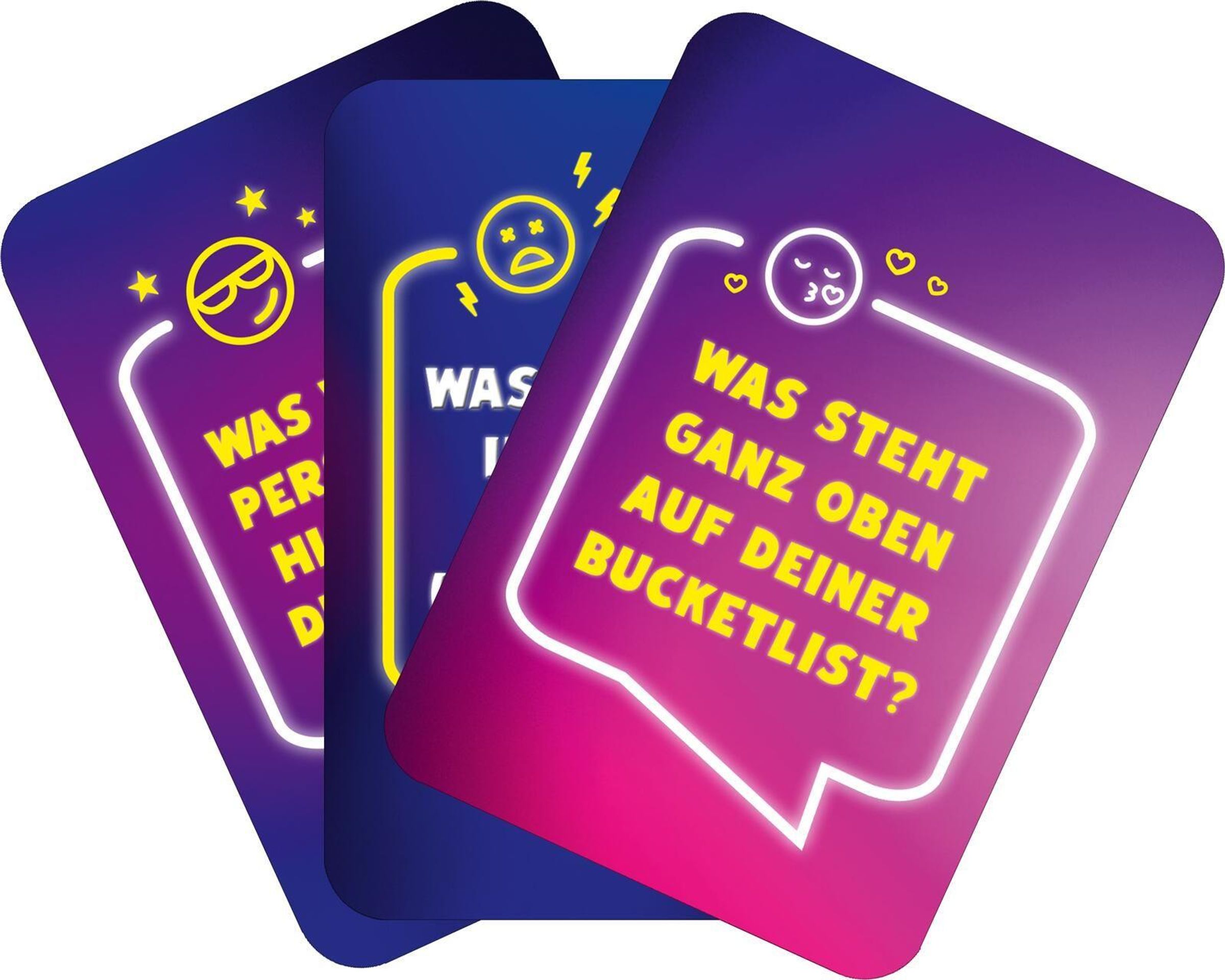 - **50 abwechslungsreiche Karten:**Von persönlichen Fragen bis zu verrückten OMG-Momenten - hier wird's nie langweilig