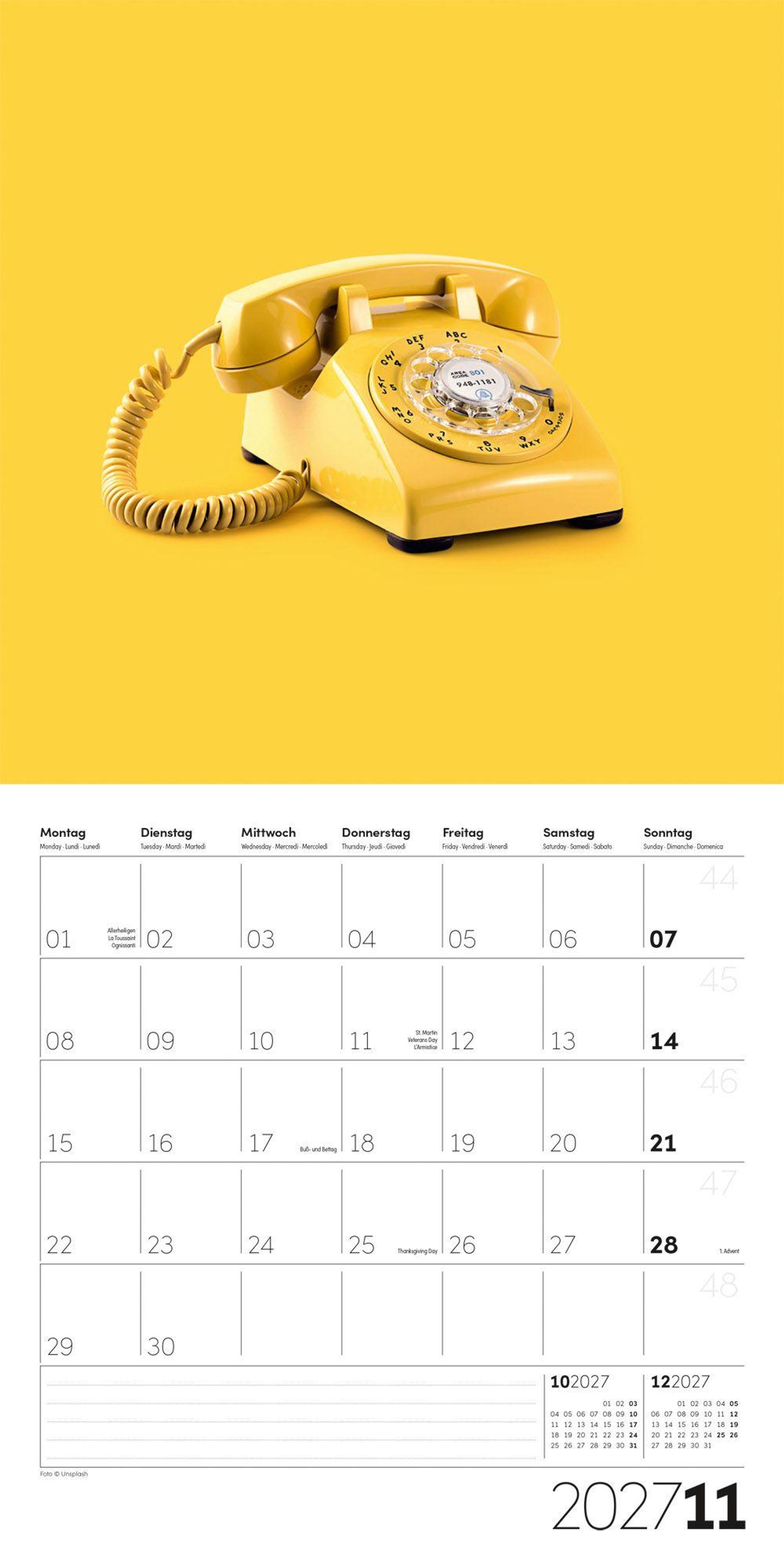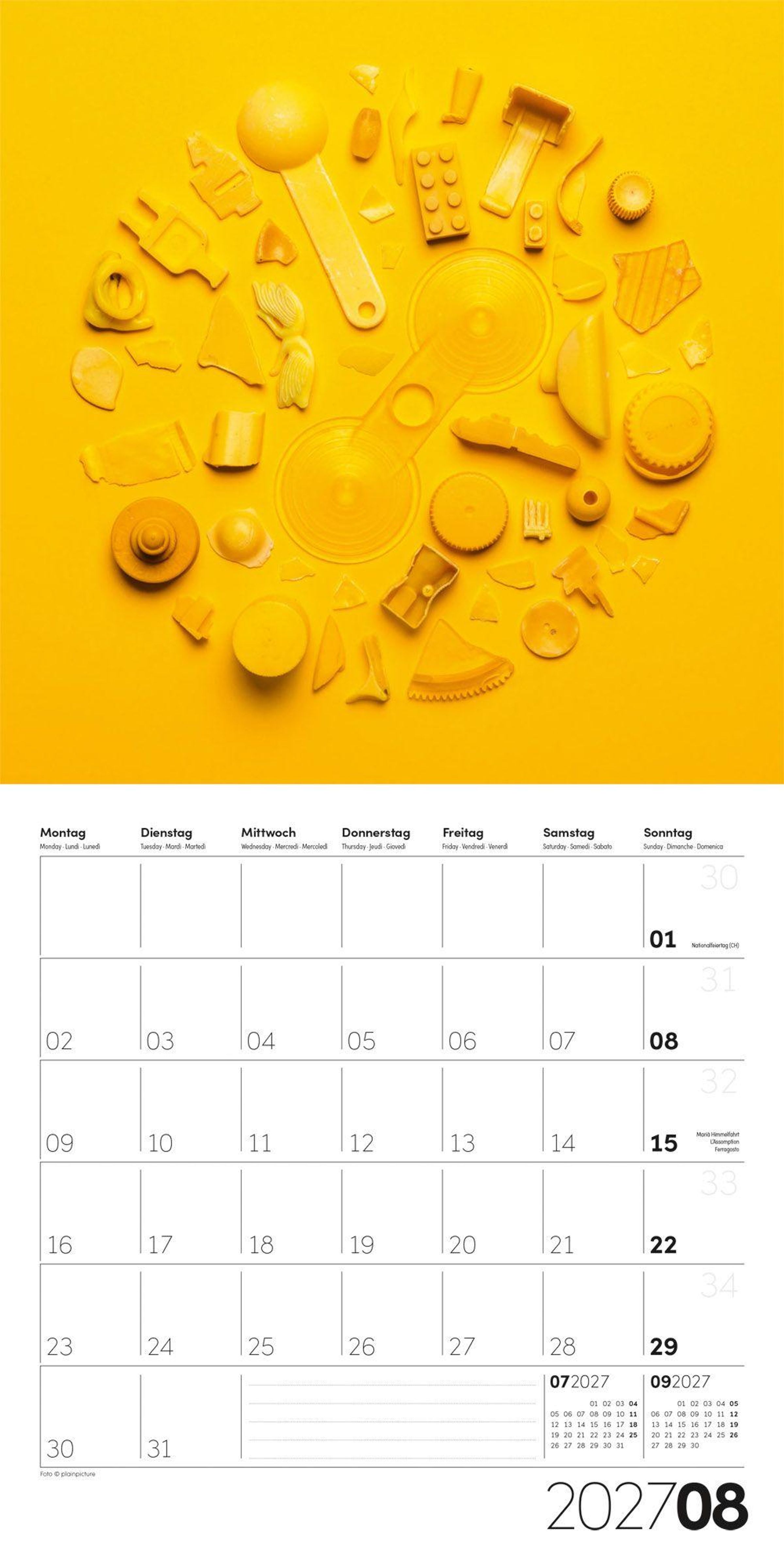 Text: "Die Farbe Gelb 2027", "Inklusive Jahresplaner".