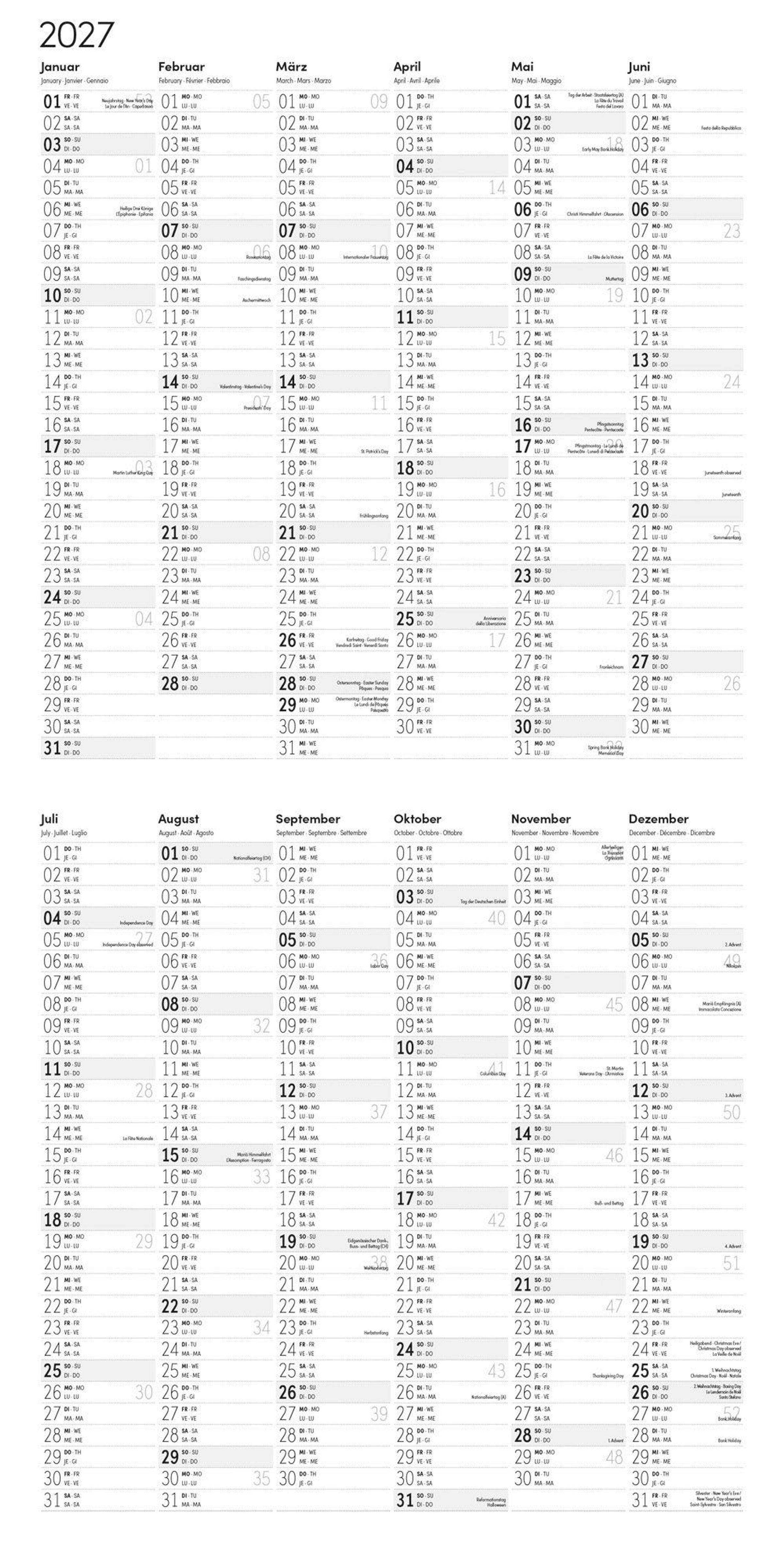• Ausdrucksstarker Kalender im schlanken Hochformat (aufgeklappt 30x60 cm) | Einträge & Notizen