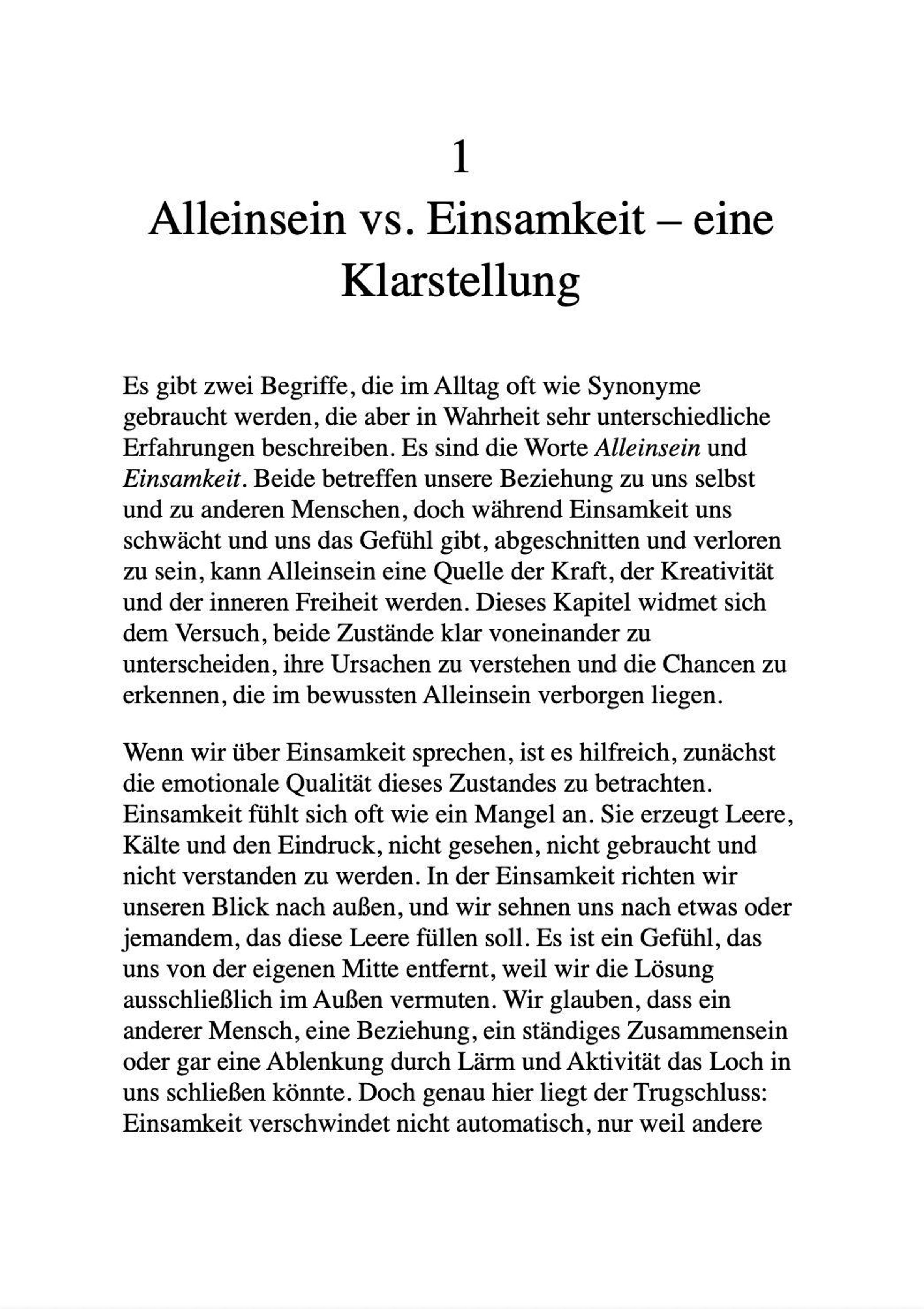 Text: "Die Kunst, alleine zu sein. Einsamkeit war mein Gefängnis. Die Stille ist nun mein Zuhause." Elegantes, minimalistisches Design., Buch