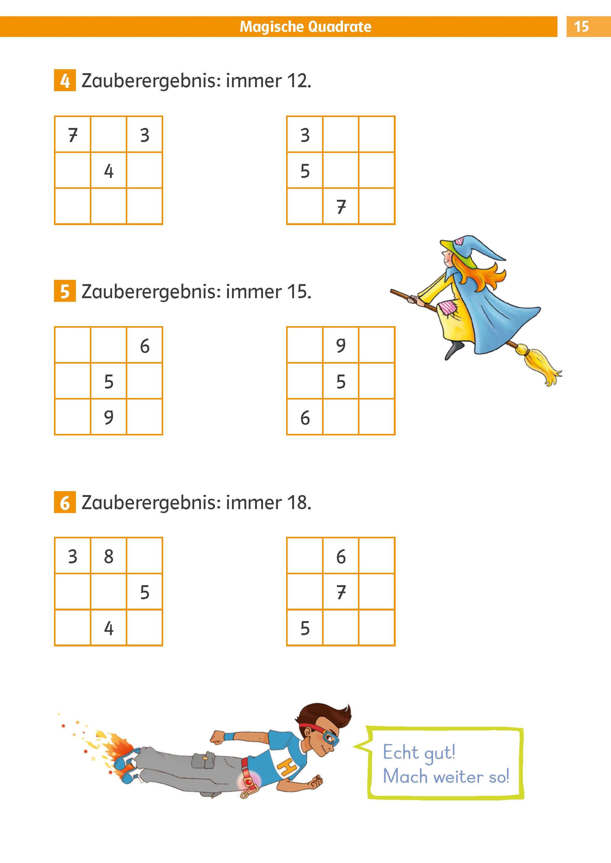 - Mit jeder gelösten Übung kommst du der spannenden Mission näher: Klebe für gemeisterte Übungen die Belohnungssticker auf dein Lösungsbild und befreie den Geist aus der Lampe!