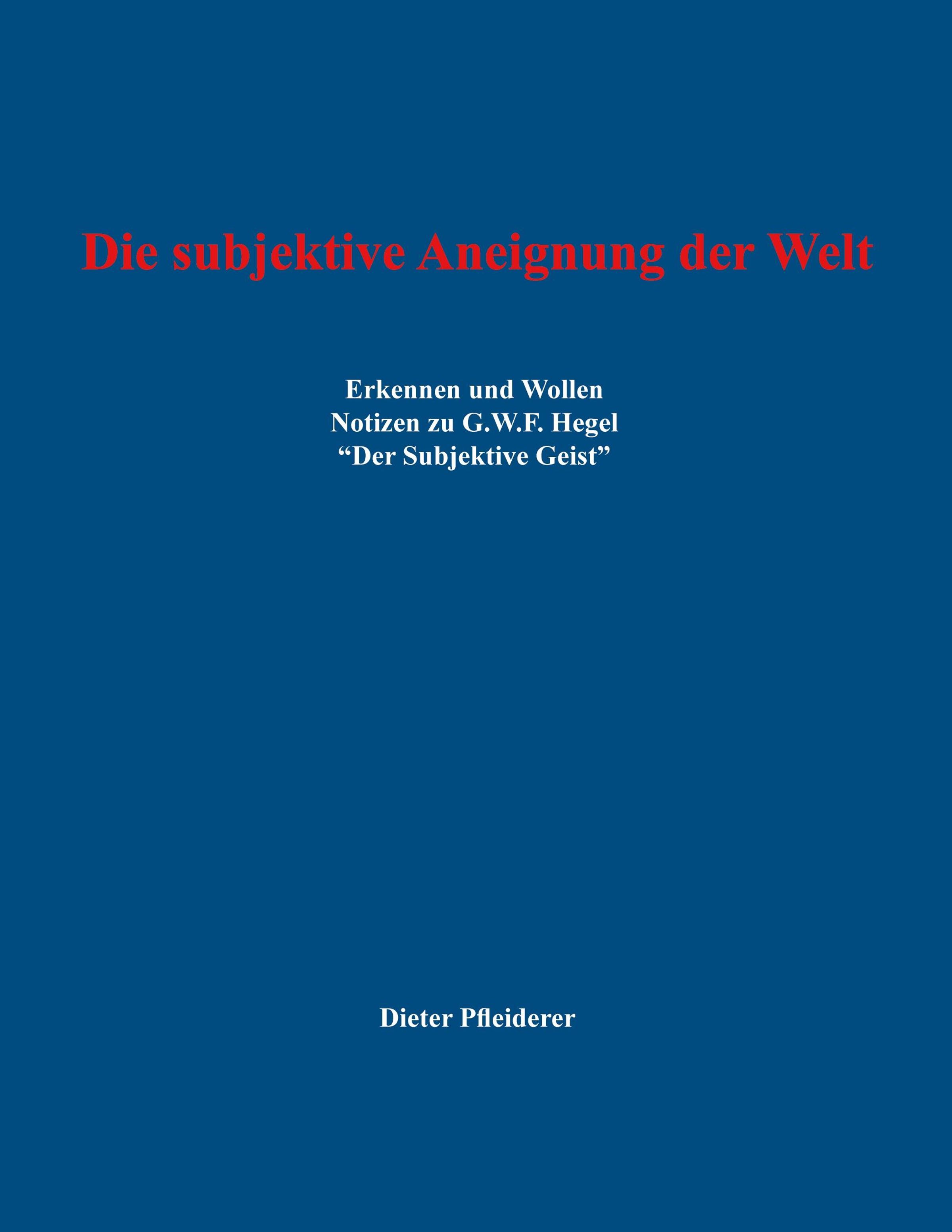 Roter Text: "Die subjektive Aneignung der Welt". Darunter weitere Texte. Blauer Hintergrund., Buch