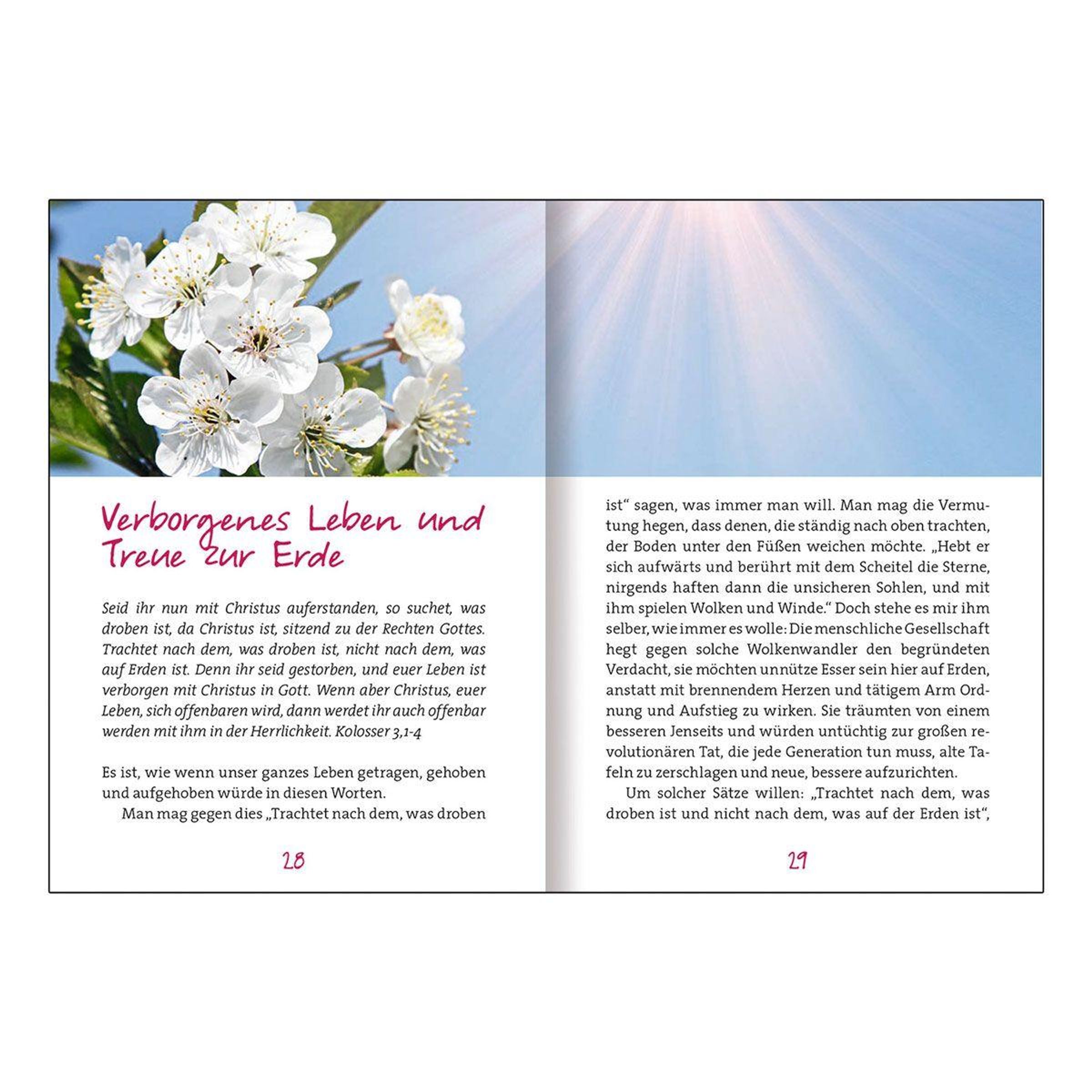 Bonhoeffers Impulse für die Fasten- und Osterzeit 'Ein Jä Gottes zur Menschheit, ein neuer Sinn für all unser Tun - das ist Ostern.' Dietrich Bonhoeffers Worte für die Fasten und Osterzeit sind klar und eindrücklich. Er ermutigt dazu, in der Fastenzeit einen neuen Anfang zu machen, und meditiert das Passionsgeschehen der Heiligen Schrift. Worum geht es bei Passion und Ostern? Was bedeutet 'auferstanden'? Auch Themen wie Hoffnung, Gebet, Verantwortung und Nächstenliebe kommen zur Sprache. Die Meditationen werden von sorgsam ausgewählten Bildern illustriert.