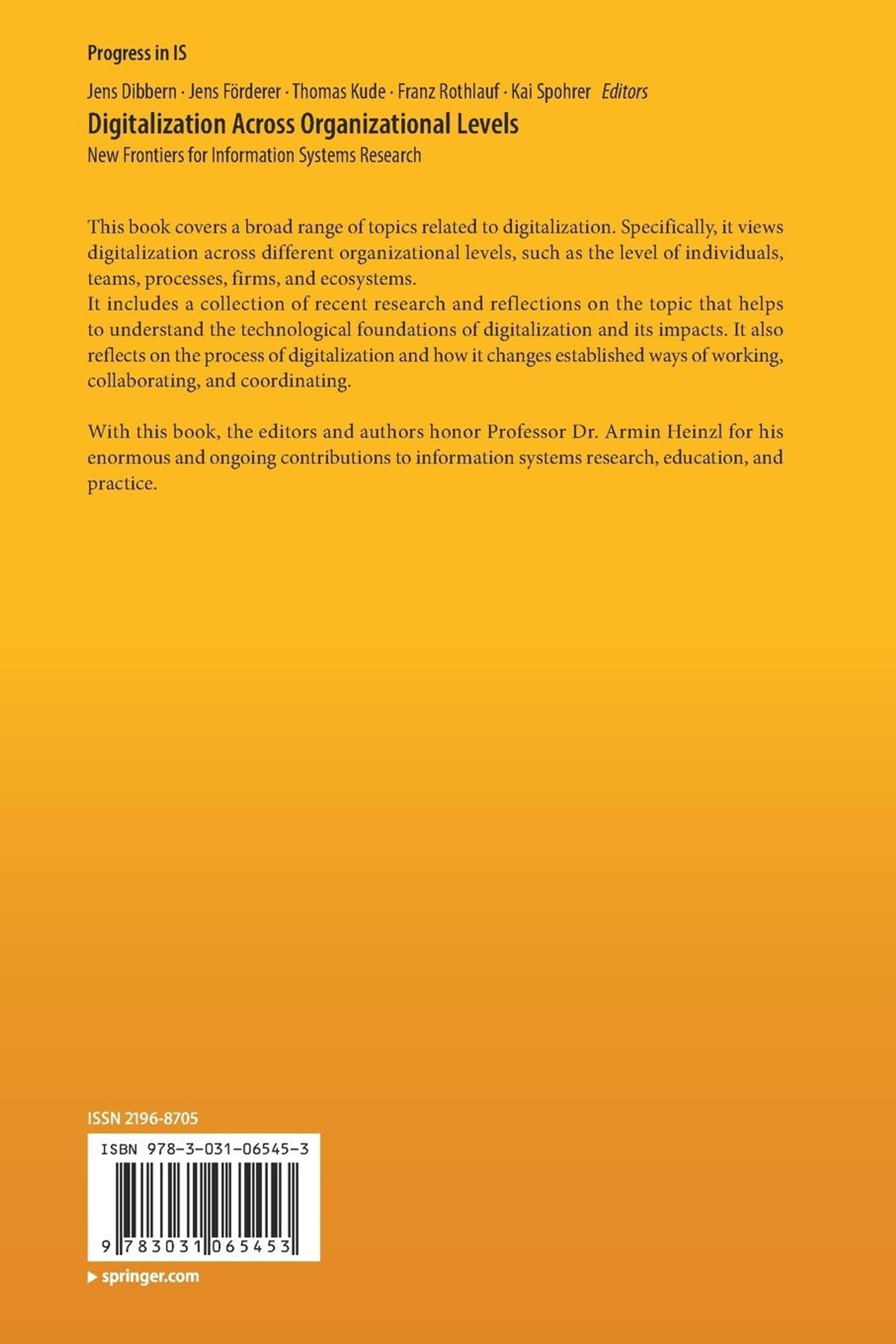 Part 1. Introduction.- Chapter 1. Studying Digitalization Across Levels: An Overview and Introduction.- Part 2. Outsourcing and Multi-party Projects: Reflections and Experiences.- Chapter 2. The Early History of It Outsourcing - a Personal Reflection.- Chapter 3. How to Ensure Collective Action in Multinational Projects - Insights from the EurHisFirm Project.- Part 3. Culture and Gender: Recognition of Promotion.- Chapter 4. A Theory of Organizational Information Culture.- Chapter 5. It or Not It? A Female View on Inhibiting and Promoting Factors in Young Women's Decisions for a Career in It.- Part 4. Digital Platforms and Ecosystems: Outcomes and Implications.- Chapter 6. How Access to Resources Affects Complementor Innovation in Platform Ecosystems.- Chapter 7. The Economic and Social Consequences of Digital Platforms: A Systematic and Interdisciplinary Literature Review.- Part 5. Emerging Technologies: Affordances and Opportunities.- Chapter 8. The Affordances of Blockchain Platforms: Why Service Providers Use Blockchains.- Chapter 9. Process Mining for Carbon Accounting: An Analysis of Requirements and Potentials.- Part 6. Recommendation Networks and Industry Structure: Sales and Market Analysis.- Chapter 10. The Impact of Product Recommendation Networks on Sales: The Moderating Influence of Product Age.- Chapter 11. Airline Market Concentration in Europe.