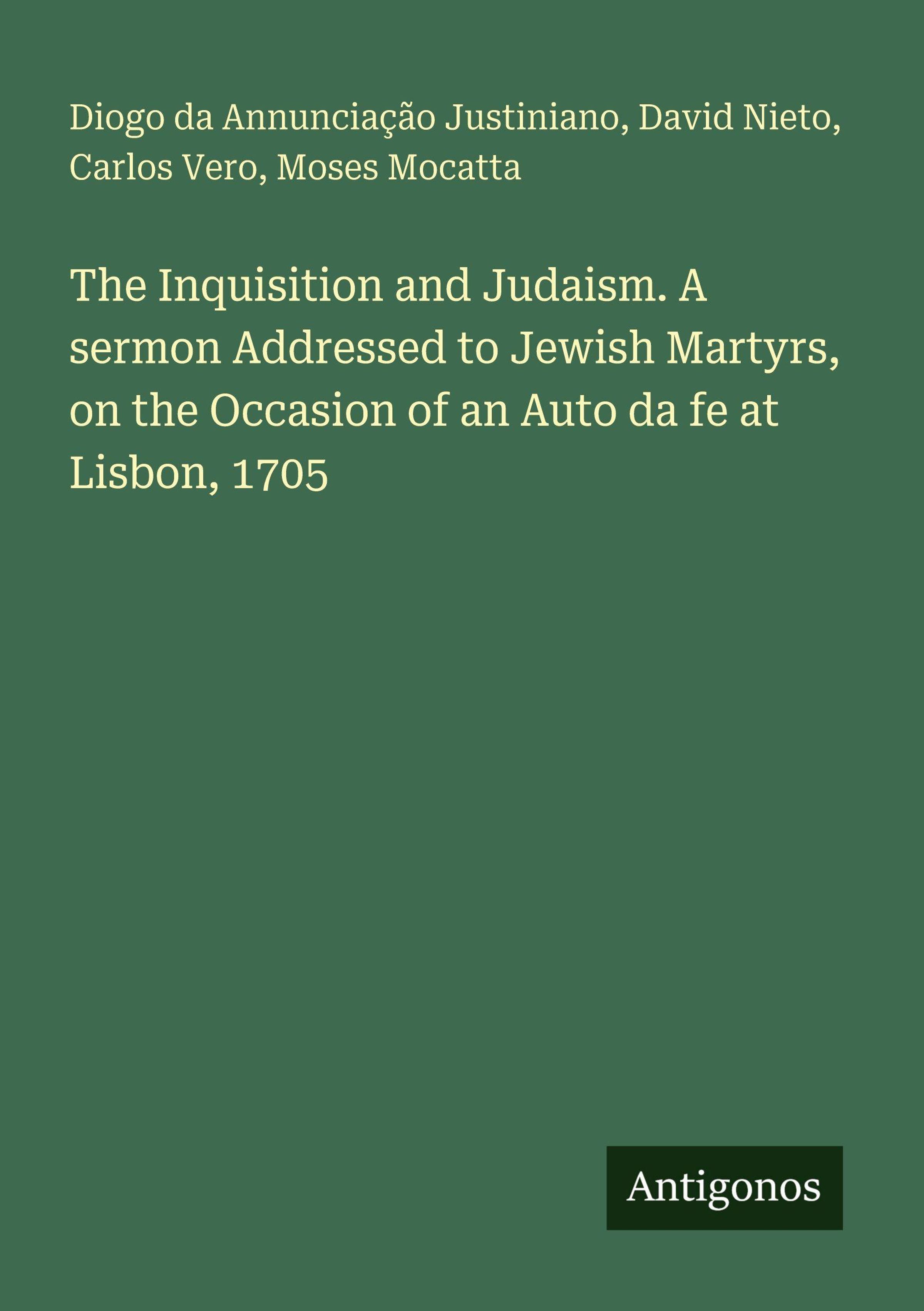 The Inquisition and Judaism. A sermon Addressed to Jewish Martyrs, on the Occasion of an Auto da fe at Lisbon, 1705