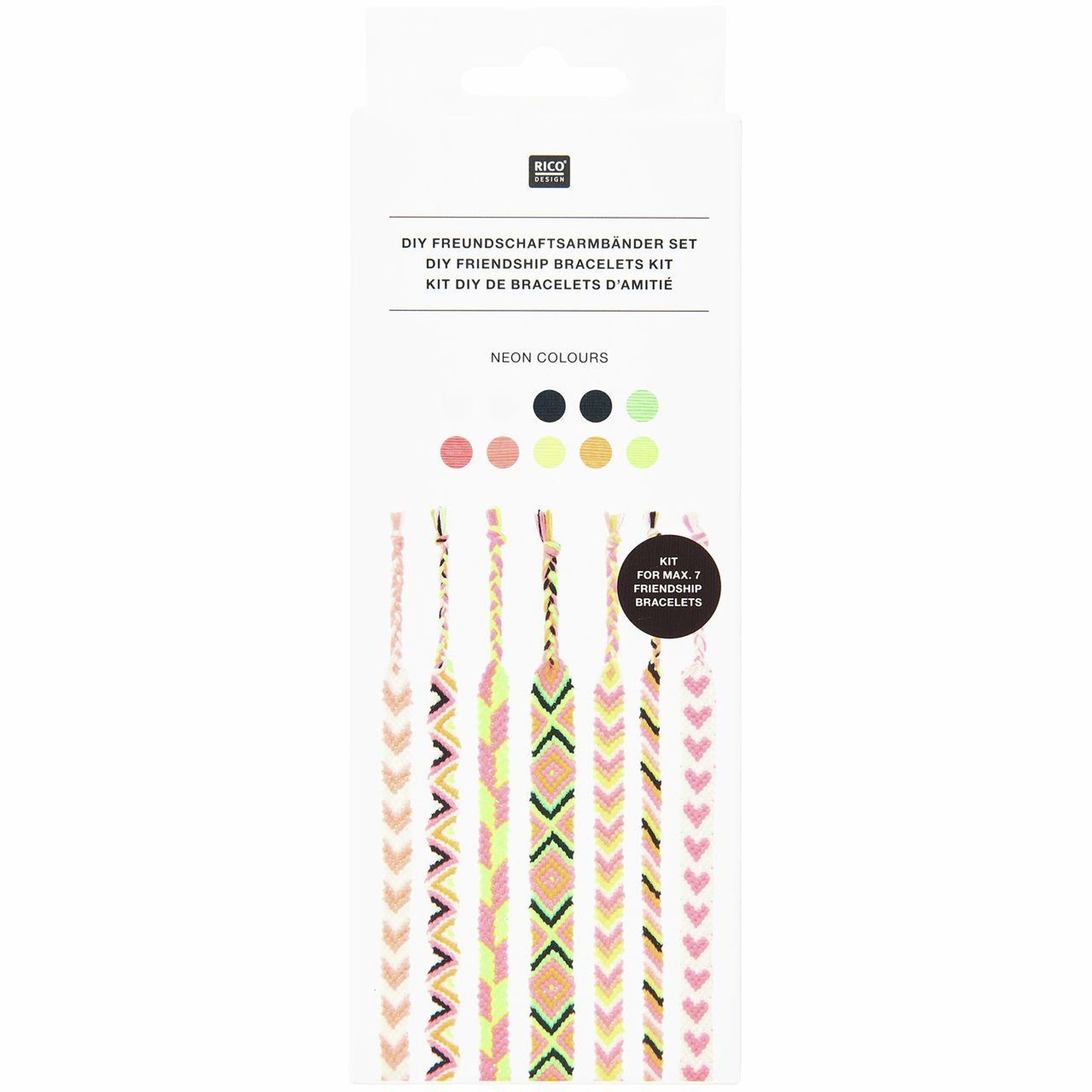 Das DIY Freundschaftsarmbänder Set Neon Colours enthält alles, was für das Knüpfen farbenfroher Armbänder benötigt wird. Mit zehn kräftigen Garnfarben aus 100 % Baumwolle und einer Anleitung für zehn verschiedene Knüpfmotive lassen sich bis zu sieben individuelle Freundschaftsarmbänder gestalten. Ein ergänzendes Video-Tutorial erleichtert den Einstieg und inspiriert zu kreativen Kombinationen.