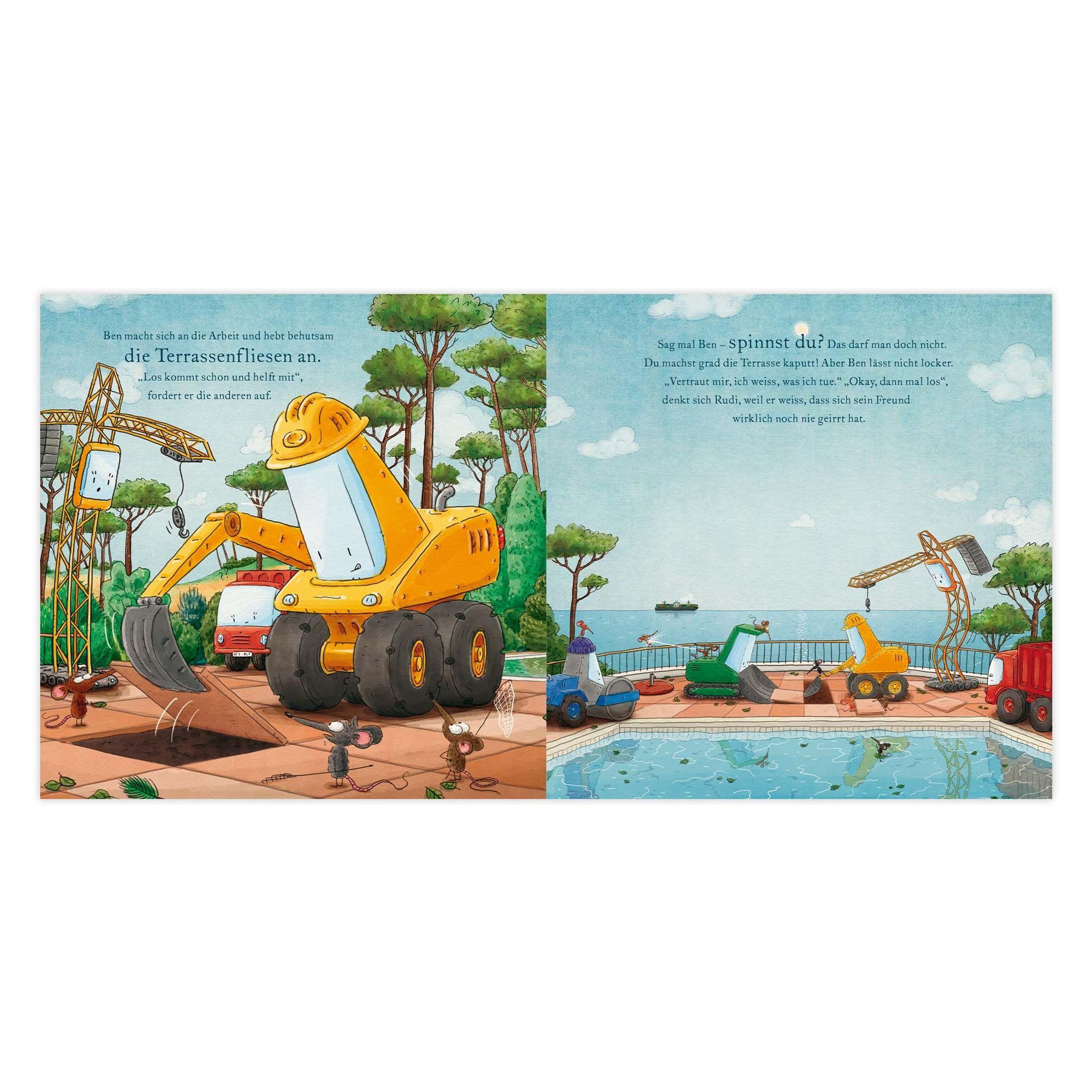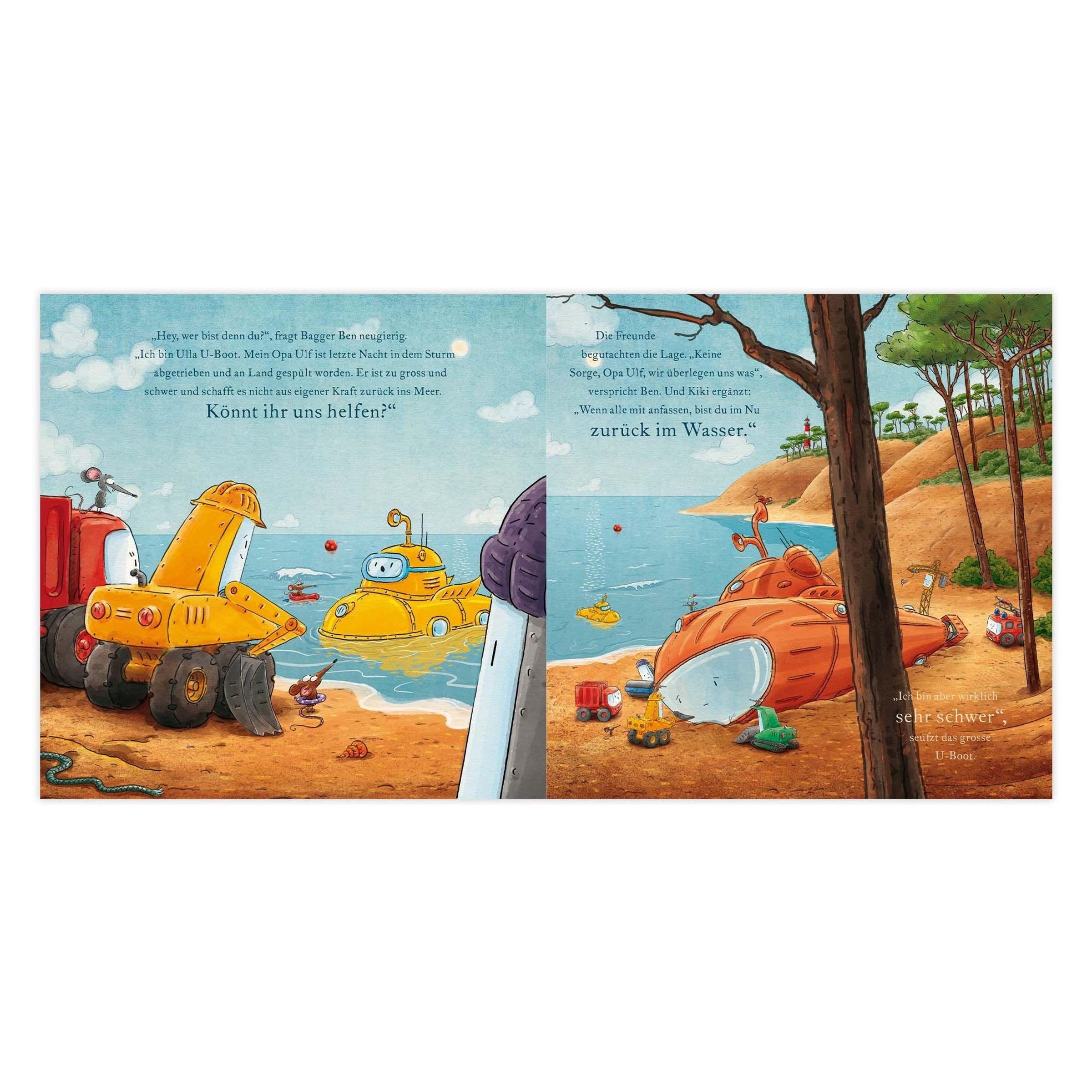 Das Bilderbuch verbindet Baustellenfahrzeuge, Meer und Abenteuer zu einer spannenden Vorlesegeschichte für Kinder ab 3 Jahren. Ein neuer Band rund um Bagger Ben und seine Freunde aus dem Baustellen-Kindergarten - ideal für kleine Fans von Baggern und großen Fahrzeugen.