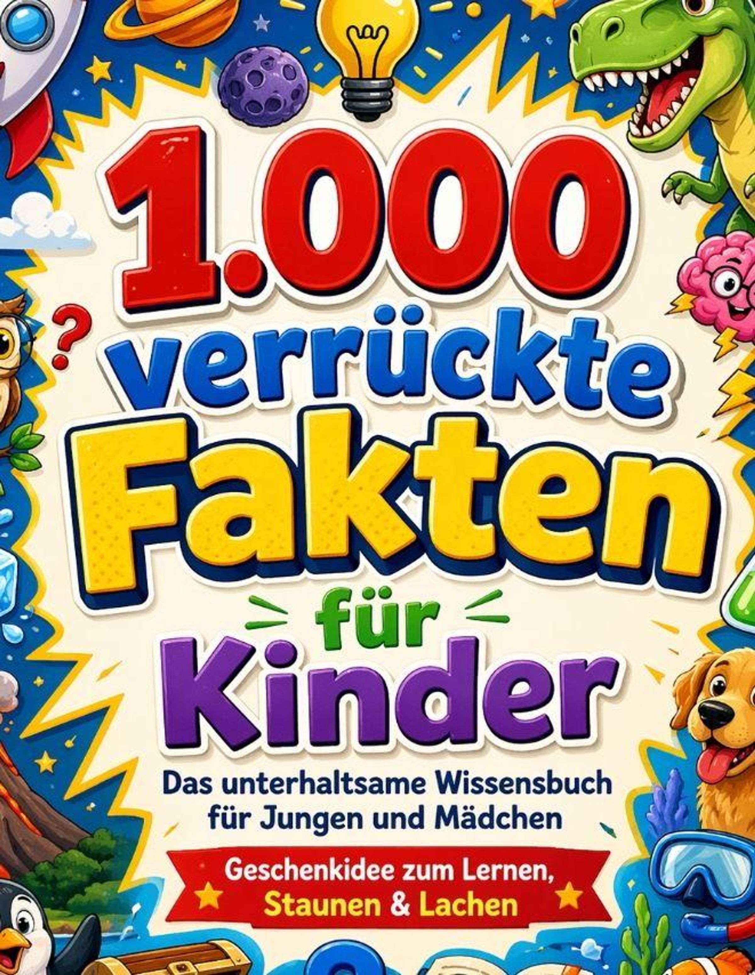 In diesem Buch entdecken Kinder 1.000 verrückte, lustige und erstaunliche Fakten über Tiere, Dinosaurier, das Weltall, die Erde, den menschlichen Körper, Technik, Geschichte, Sport, Länder, Erfindungen und viele weitere spannende Themen. Statt trockener Wissensvermittlung erwartet junge Leserinnen und Leser ein unterhaltsames Wissensbuch voller Aha-Momente, überraschender Rekorde, kurioser Irrtümer und spannender Zusammenhänge. Kinder erfahren zum Beispiel, warum manche Tiere echte Superkräfte haben, welche Geheimnisse im Weltall verborgen liegen, was unser Gehirn alles kann, welche Erfindungen die Welt verändert haben und welche Fakten man direkt weitererzählen möchte. Das Buch wurde so geschrieben, dass Wissen leicht verständlich, abwechslungsreich und kindgerecht vermittelt wird. Jede Seite lädt zum Staunen, Lachen, Mitdenken und Mitreden ein. Dadurch eignet sich das Buch ideal für neugierige Kinder, die gerne Neues entdecken, für gemeinsame Lesezeit in der Familie, für kurze Wissenshäppchen zwischendurch und als sinnvolle Geschenkidee für Jungen und Mädchen. "1.000 verrückte Fakten für Kinder" ist ein unterhaltsames Kinder-Sachbuch, das Allgemeinwissen spielerisch erweitert, die Neugier fördert und Kindern zeigt, wie faszinierend unsere Welt wirk