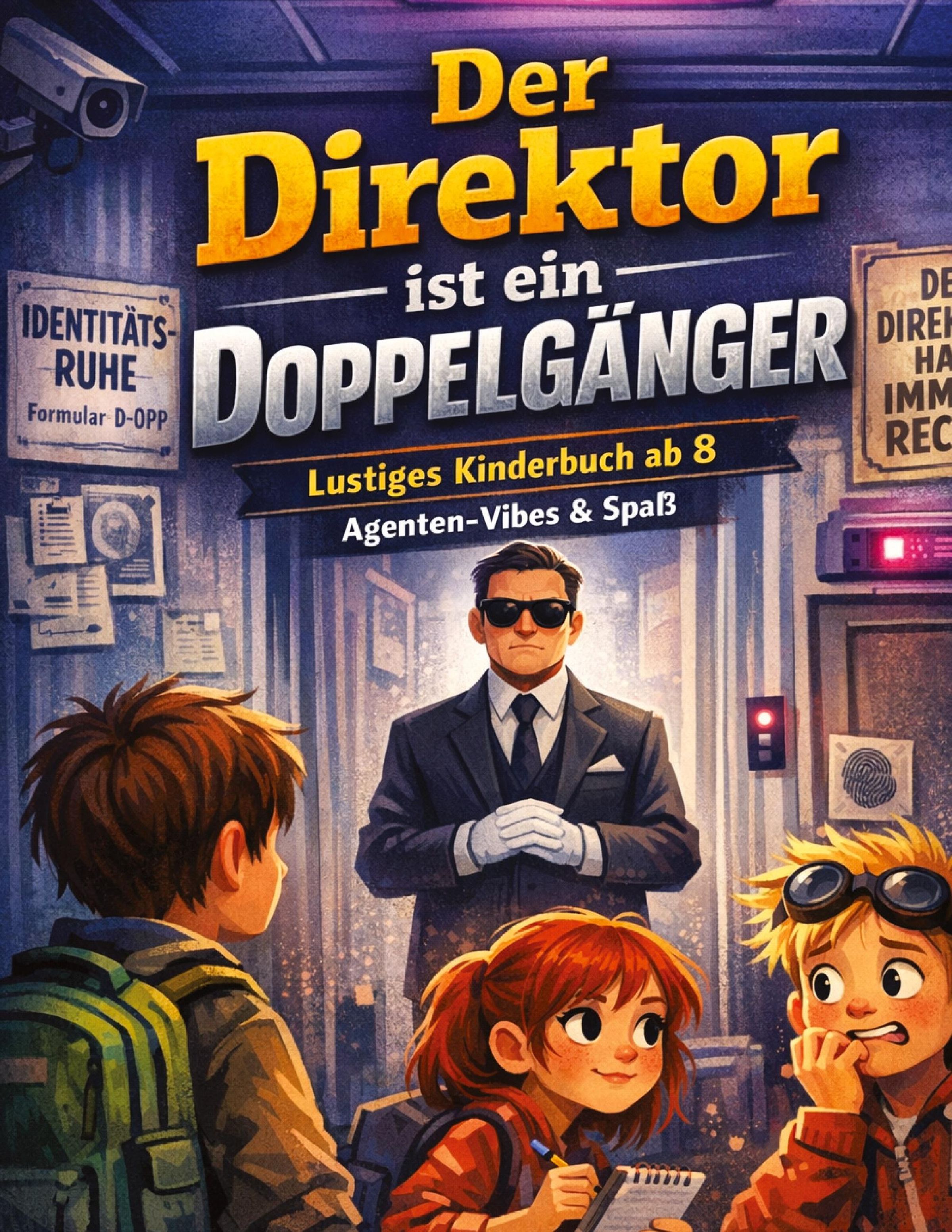 "Der Direktor ist ein Doppelgänger" ist ein **lustiges Kinderbuch ab 8 Jahren** mit **Agenten-Vibes**, schrägen Regeln, geheimen Formularen, absurden Schul-Protokollen und einer großen Portion Humor. Perfekt für Kinder, die **spannende Schulgeschichten**, **Detektiv-Abenteuer**, **Agenten-Feeling**, **Rätsel**, **Teamwork** und freche Pointen lieben - zum **Selbstlesen** oder **Vorlesen**.