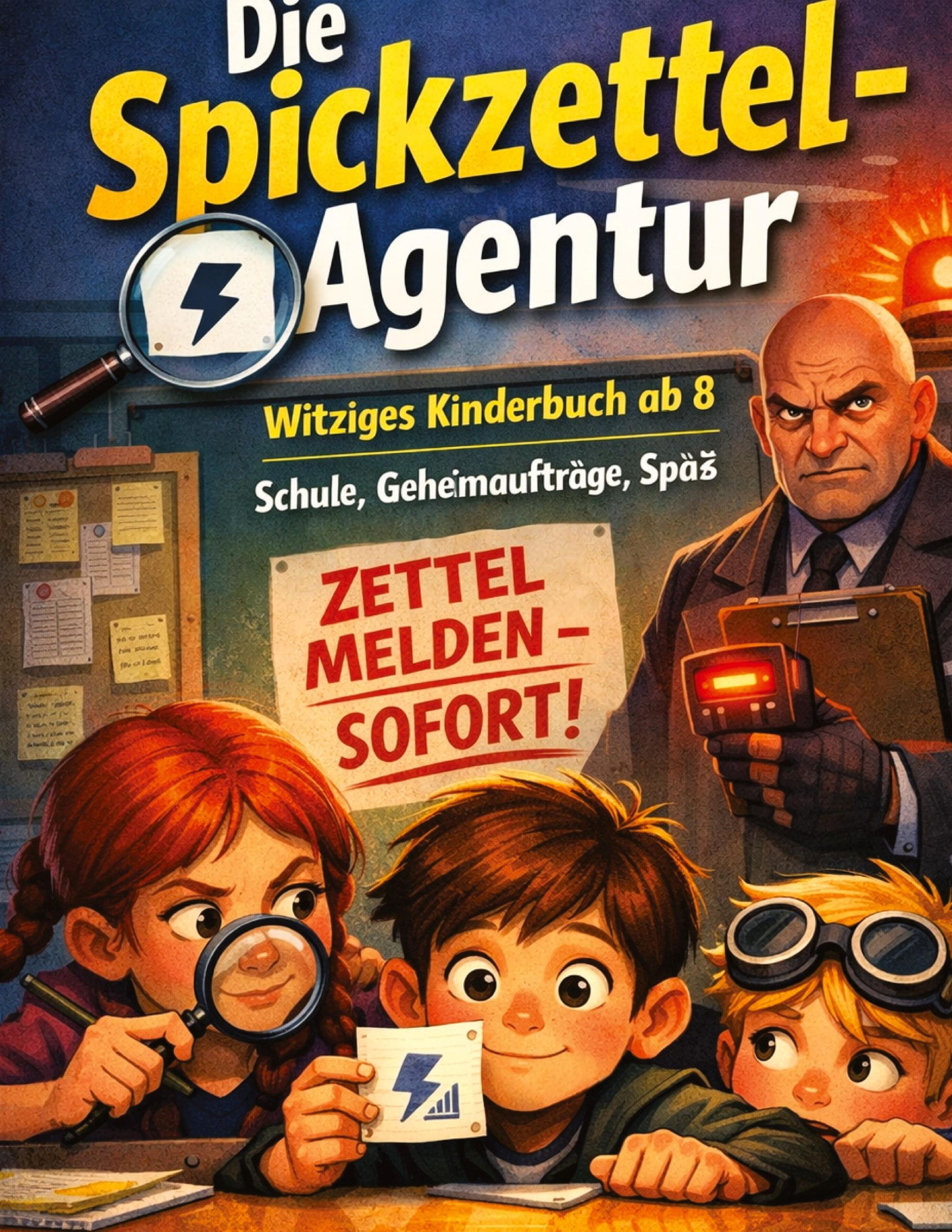 **"Die Spickzettel-Agentur"** ist ein **witziges Kinderbuch ab 8 Jahren**, das **Schule, Geheimaufträge und Spaß** perfekt miteinander verbindet. Die Geschichte bietet eine starke Mischung aus **Schulgeschichte, Agenten-Abenteuer, Detektivbuch und Freundschaftsgeschichte** - ideal für Kinder, die Spannung mögen, gerne miträtseln und lustige Figuren lieben. Kurze, lebendige Szenen, viel Situationskomik und eine mitreißende Dynamik machen das Buch besonders attraktiv für junge Leserinnen und Leser.
