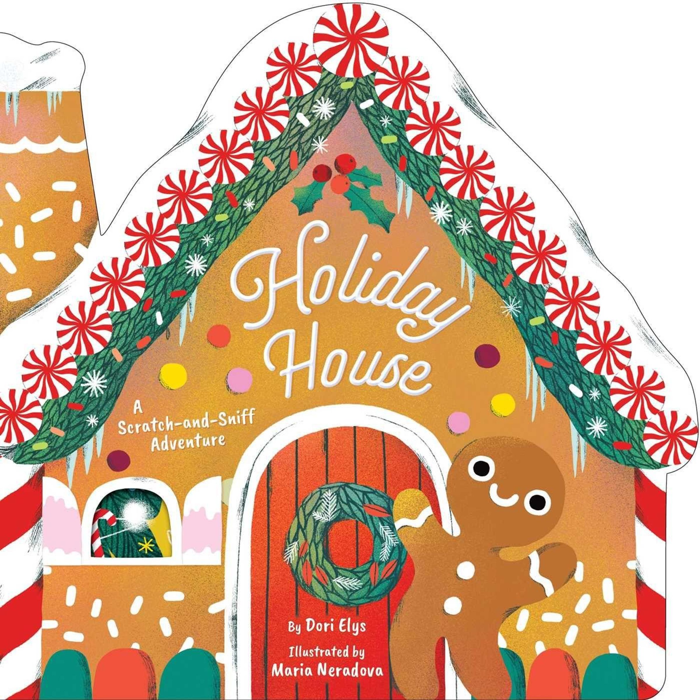 A gingerbread house opens its doors to friendly visitors in this house-shaped holiday board book featuring lift-the-flaps and scratch-and-sniff scents!