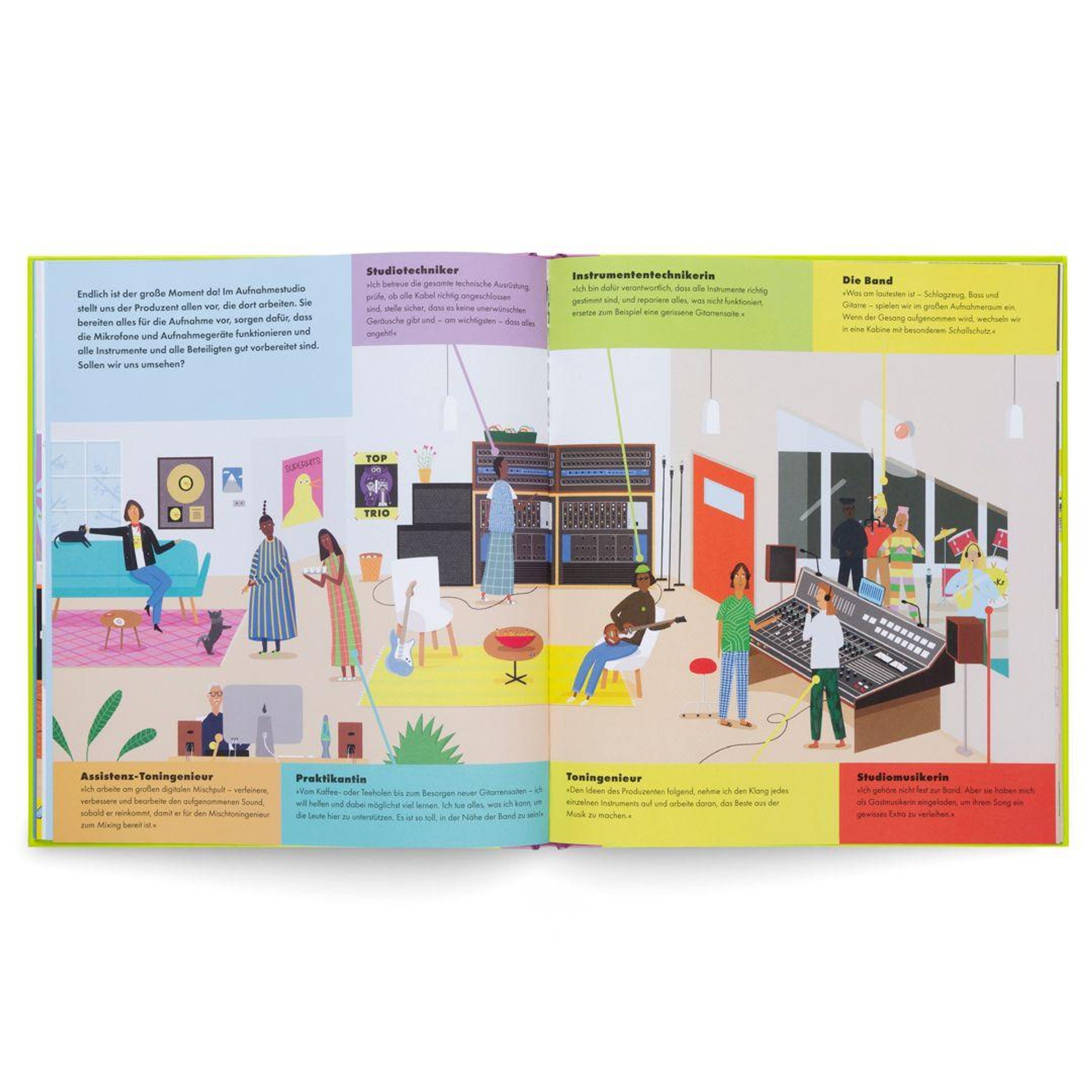 - Farbenfrohe Illustrationen: Die Zeichnungen von Rose Blake machen die kreativen Prozesse der Musikproduktion lebendig.