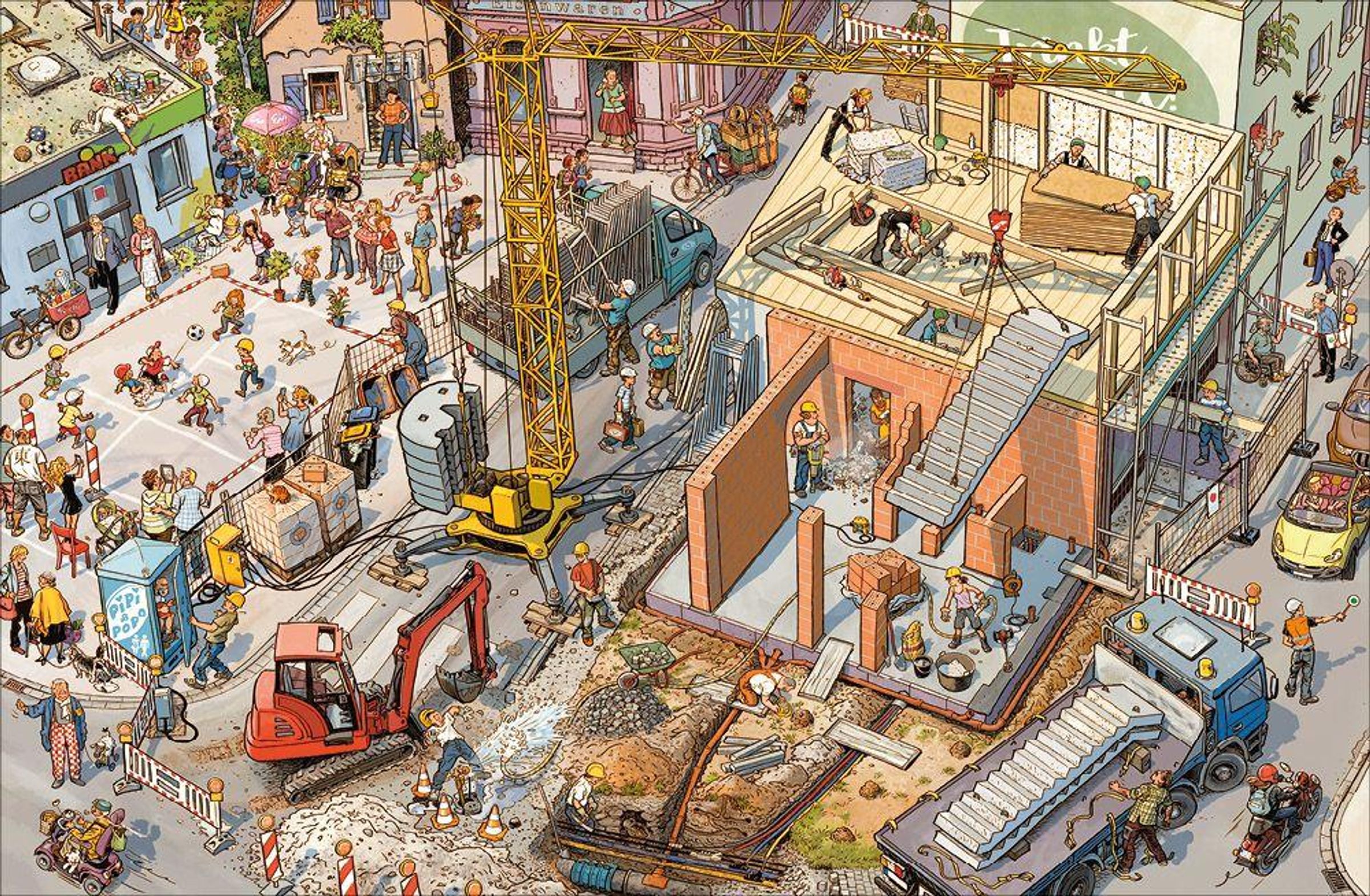 - Drei Wimmelgeschichten in einem Band: Unser Zuhause, Hier wird gebaut, Auf zum Markt!