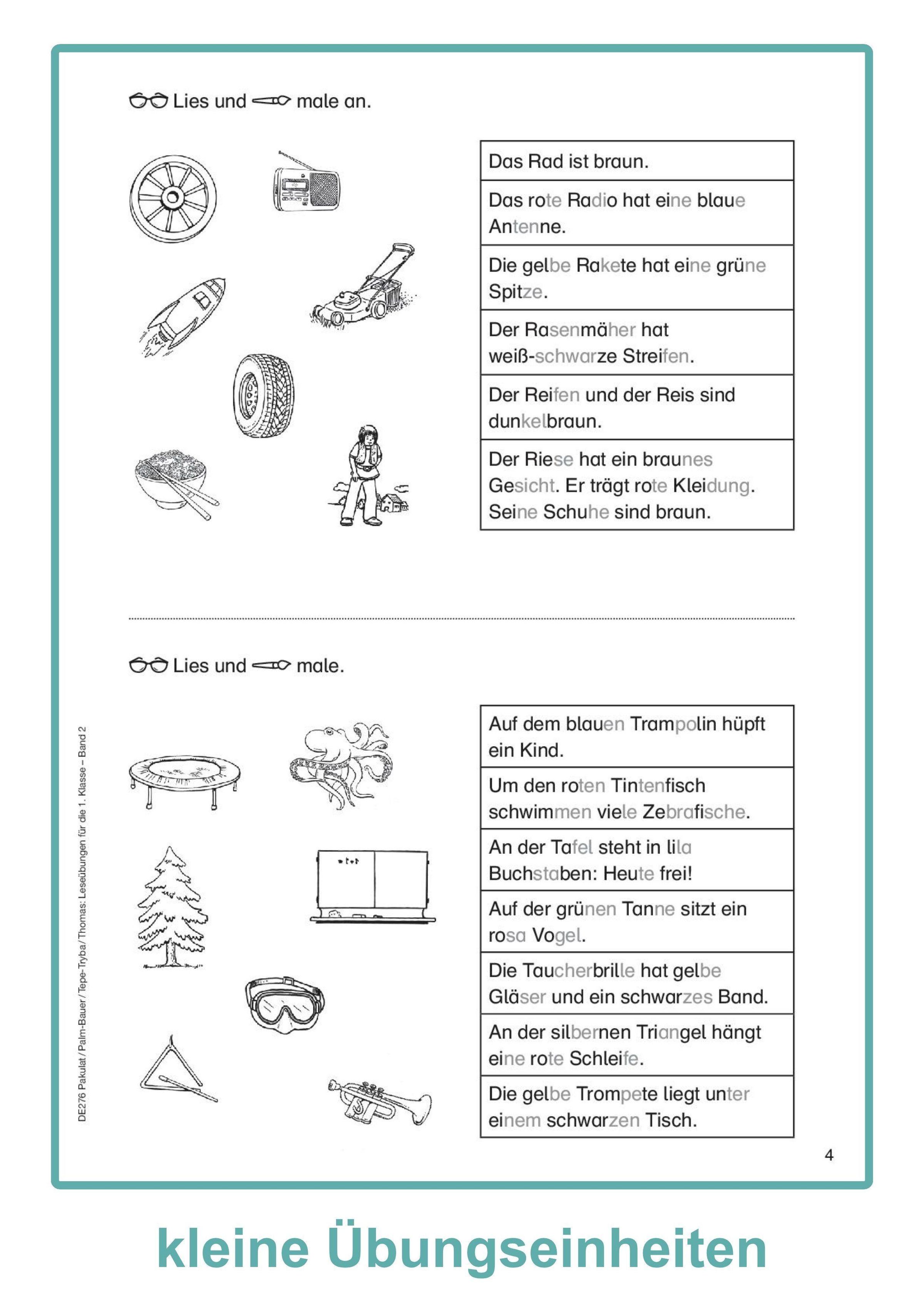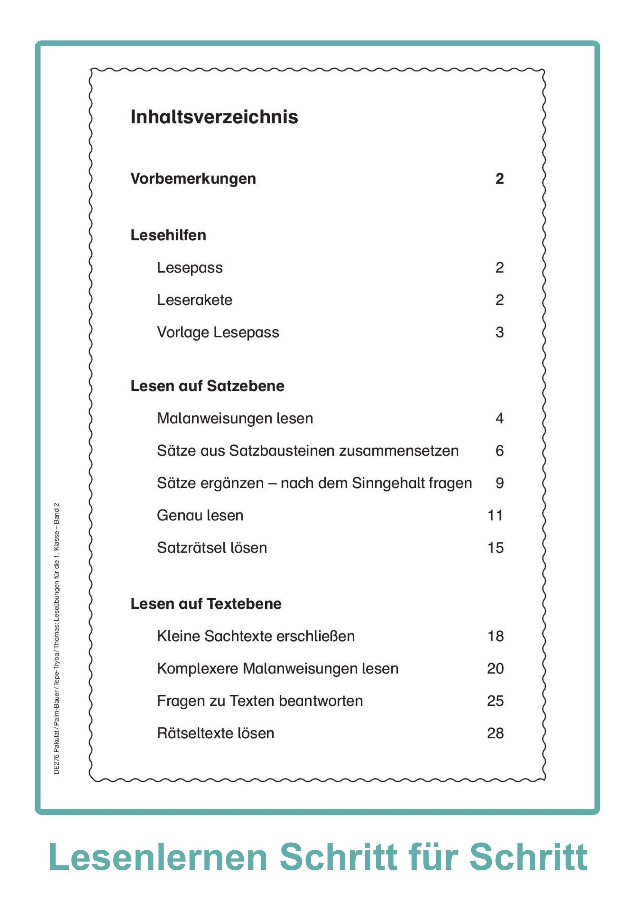 Die kleinen Leseaufträge in diesem Heft ermöglichen erste Leseerfolge. Es werden Satzteile erlesen und verbunden, Lese-Mal-Aufträge ausgeführt, richtige Sätze angekreuzt und kleine Rätsel gelöst. Dabei können die Kinder im eigenen Tempo und auf ihrem Lesestand arbeiten, dadurch ist auch der Einsatz in heterogenen Schuleingangsklassen möglich. Bei vielen Texten sind als zusätzliche Hilfe die Silben eingefärbt. Die wiederkehrenden Arbeitsanweisungen sind mit Piktogrammen versehen und ermöglichen die selbstständige Arbeit mit den Texten.