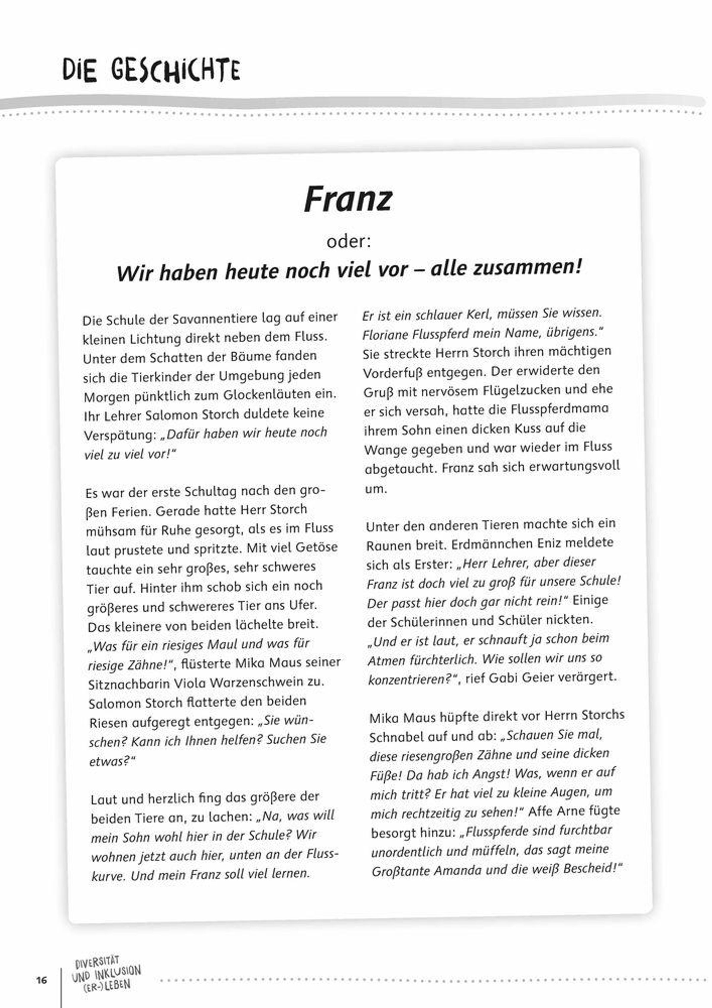 - Geschichten als Gesprächsanlass: In der Ideensammlung finden Sie die Geschichten aus dem Bilderbuch "Wir alle gehören dazu", das als fantasievoller Aufhänger und Gesprächsanlass dienen kann.