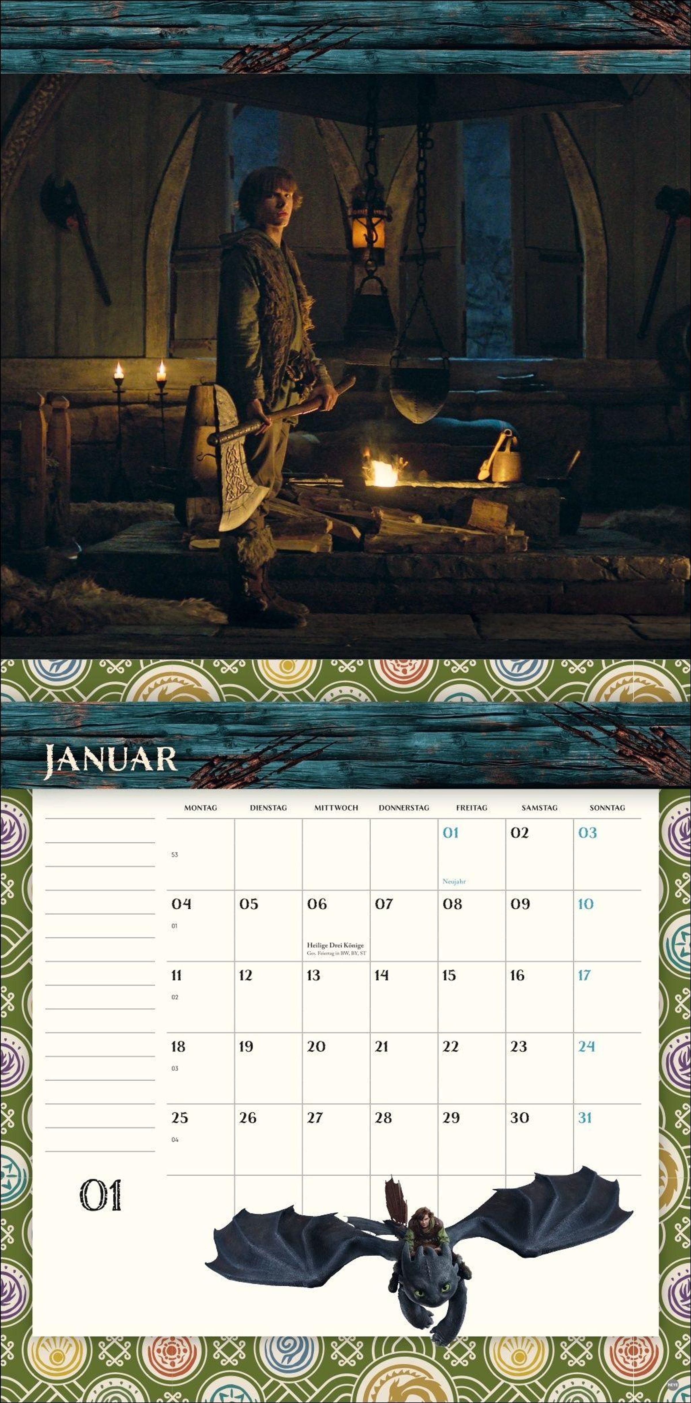 Kalender zur beliebten Filmreihe für Drachen-Fans: How to train your dragon, jetzt neu bei Heye im Athesia Kalenderverlag