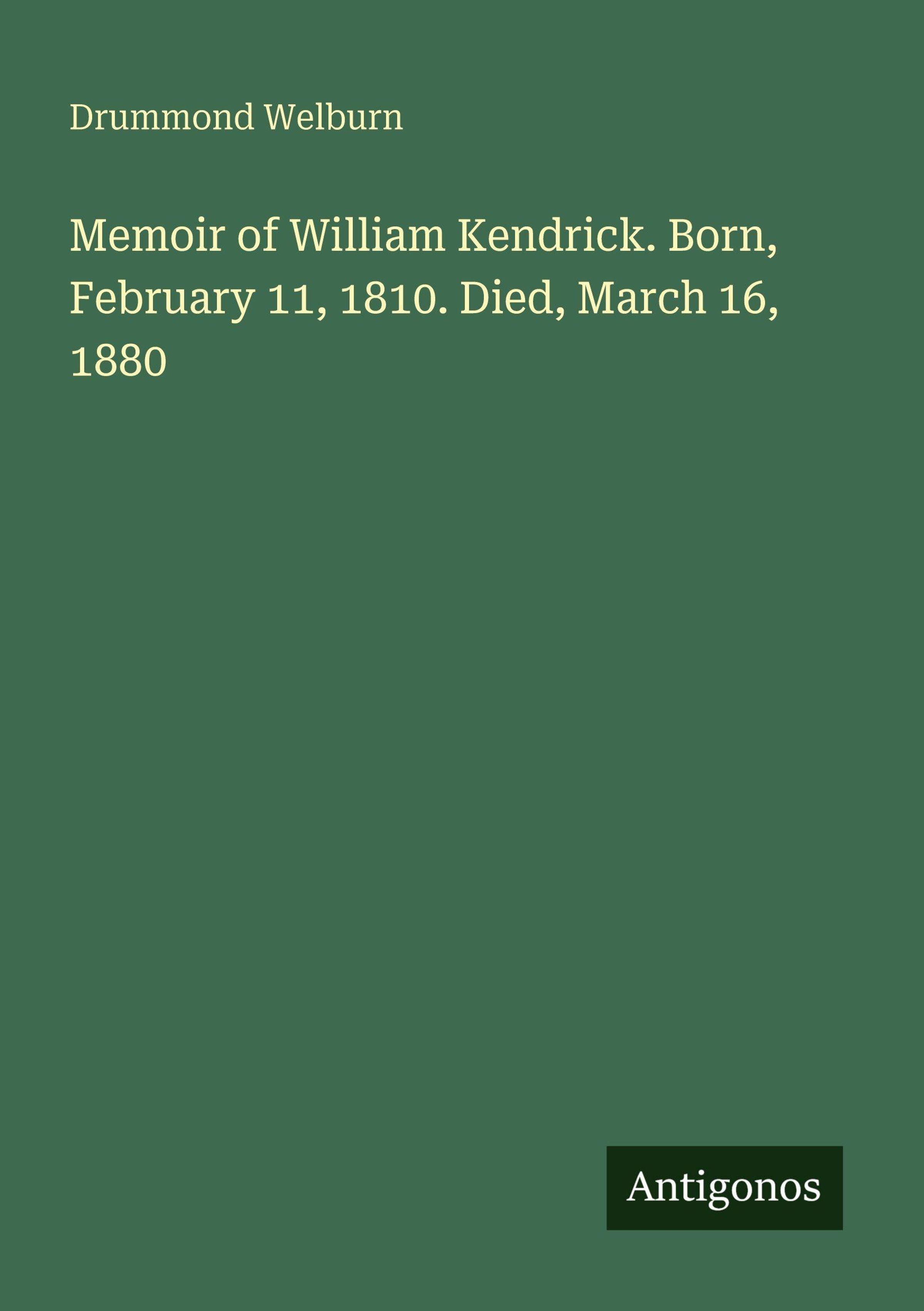 Memoir of William Kendrick. Born, February 11, 1810. Died, March 16, 1880
