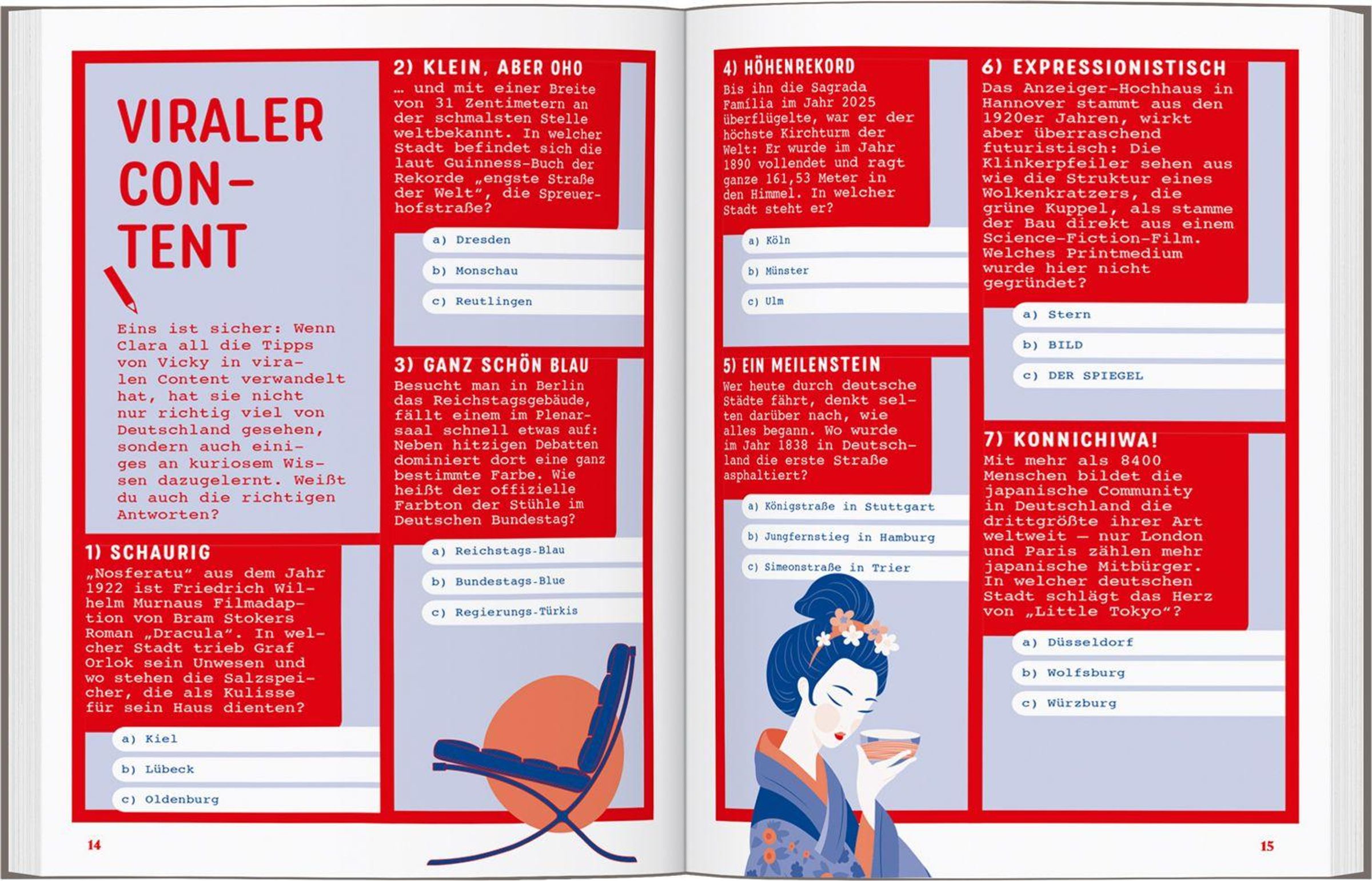 STAUNEN, WAS DAZULERNEN, DIE ZEIT VERGESSEN: DUMONTs Fantastische Rätselreise Deutschland ist voller abwechslungsreicher Knobeleien, die einmal quer durch die Heimat führen. Von Bodensee bis Wattenmeer, von Ruhrpottidylle bis zu den Weiten Brandenburgs. Durch alte Burgen, verwunschene Wälder, knuffige Dörfer und quirlige Städte. Quizfragen, Texträtsel, Sudokus, Bilderrätsel - für diese Rätselreise durch Deutschland braucht's nur kleines Handgepäck: logisches Denken, ein gutes Auge, etwas Allgemeinwissen. Und ganz viel Neugierde auf das Land der Tüftler und Träumer.