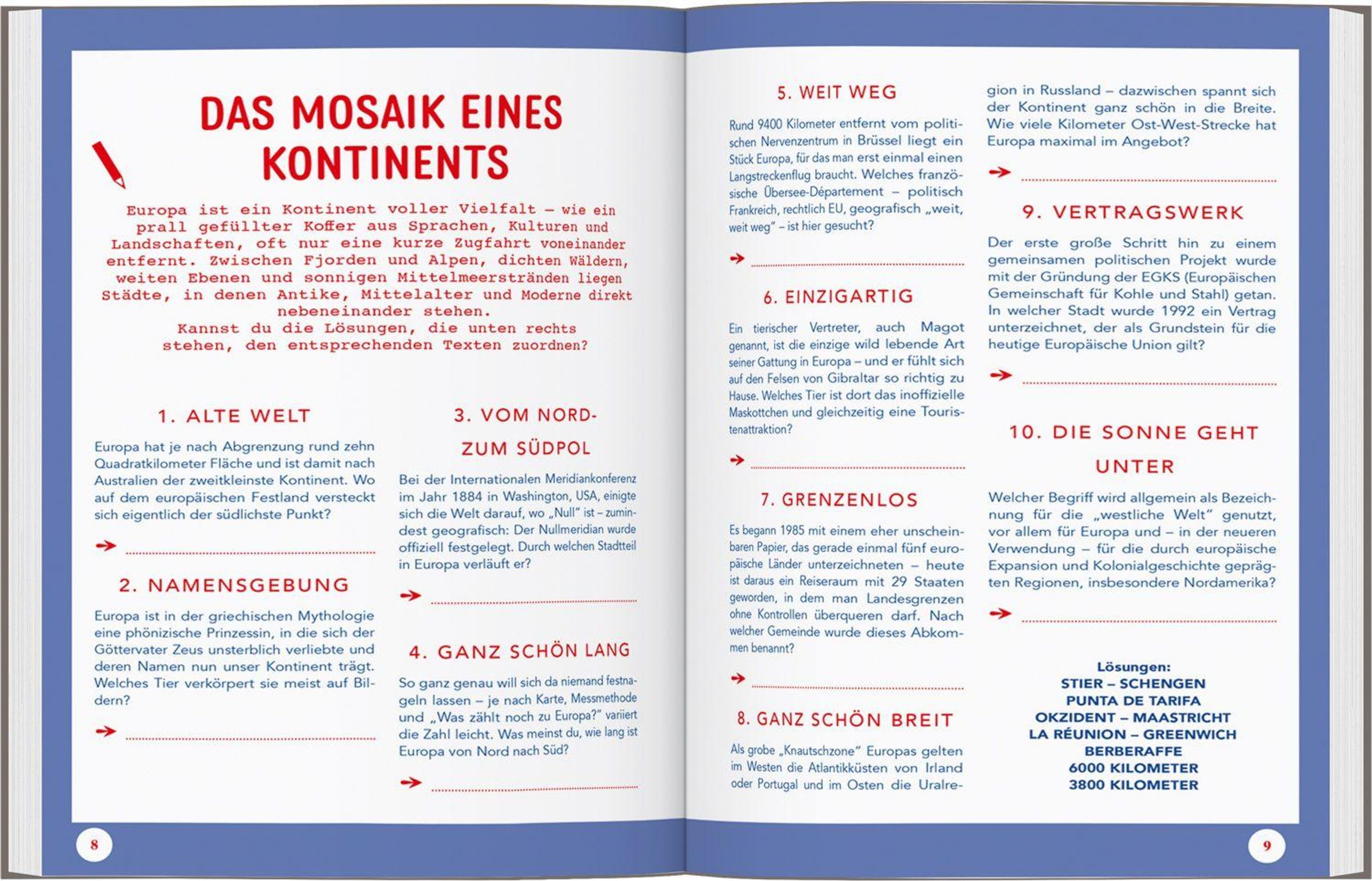 STAUNEN, WAS DAZULERNEN, DIE ZEIT VERGESSEN. DUMONTs Fantastische Rätselreise Europa ist voller abwechslungsreicher Knobeleien, die einmal quer durch den Kontinent führen. Von Nordkap bis Sizilien, von Atlantik bis Ägäis. Durch einsame Fjorde, quirlige Metropolen, verwunschene Wälder und sagenumwobene Kulturstätten. Quizfragen, Texträtsel, Sudokus, Bilderrätsel - für diese Rätselreise durch Europa braucht's nur kleines Handgepäck: logisches Denken, ein gutes Auge, etwas Allgemeinwissen. Und ganz viel Neugierde auf unseren faszinierenden Kontinent!