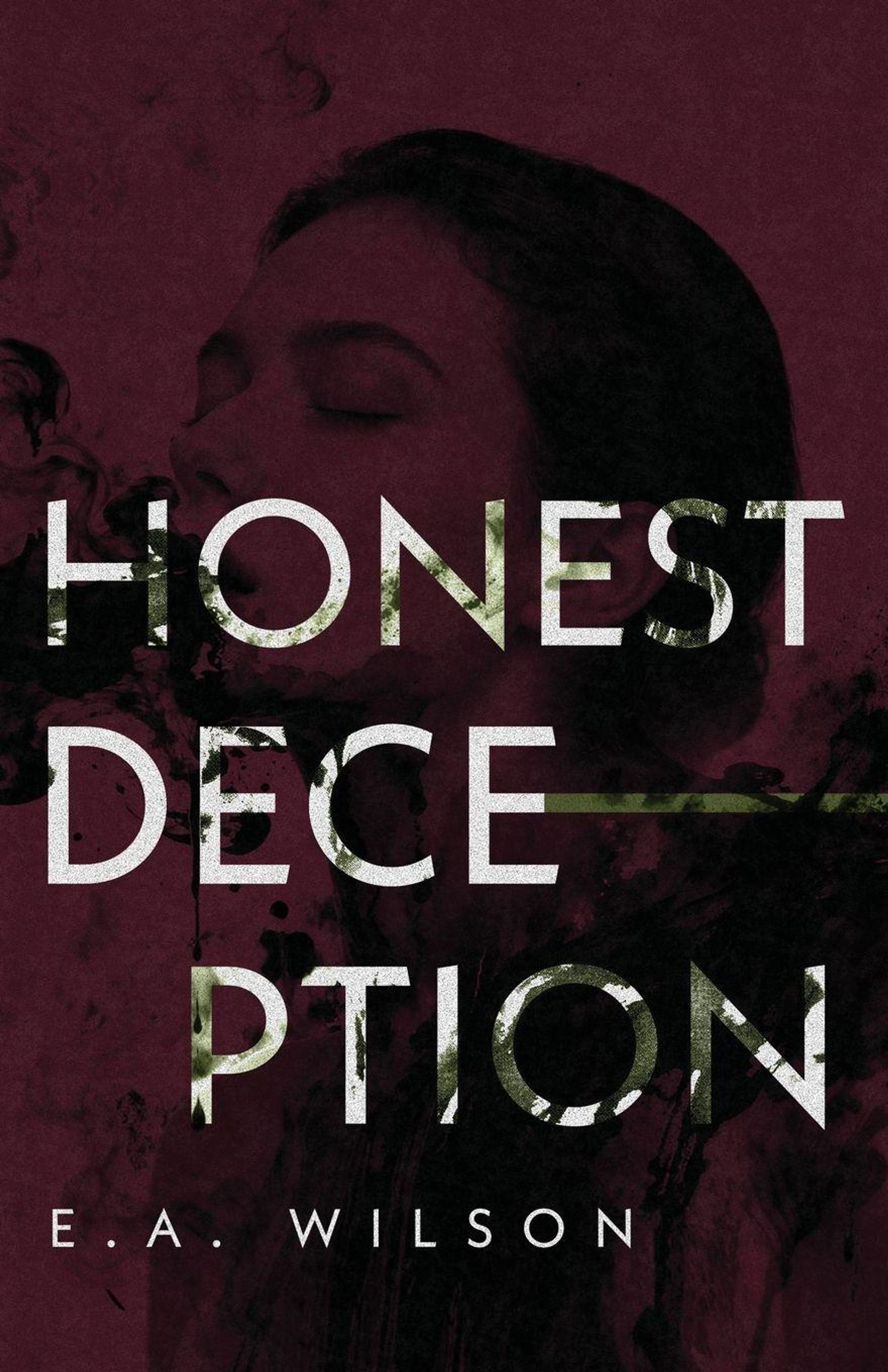 Text: "HONEST DECEPTION, E.A. WILSON". Hintergrund: Gesicht mit geschlossenen Augen, dunkel, rauchige Effekte., Buch