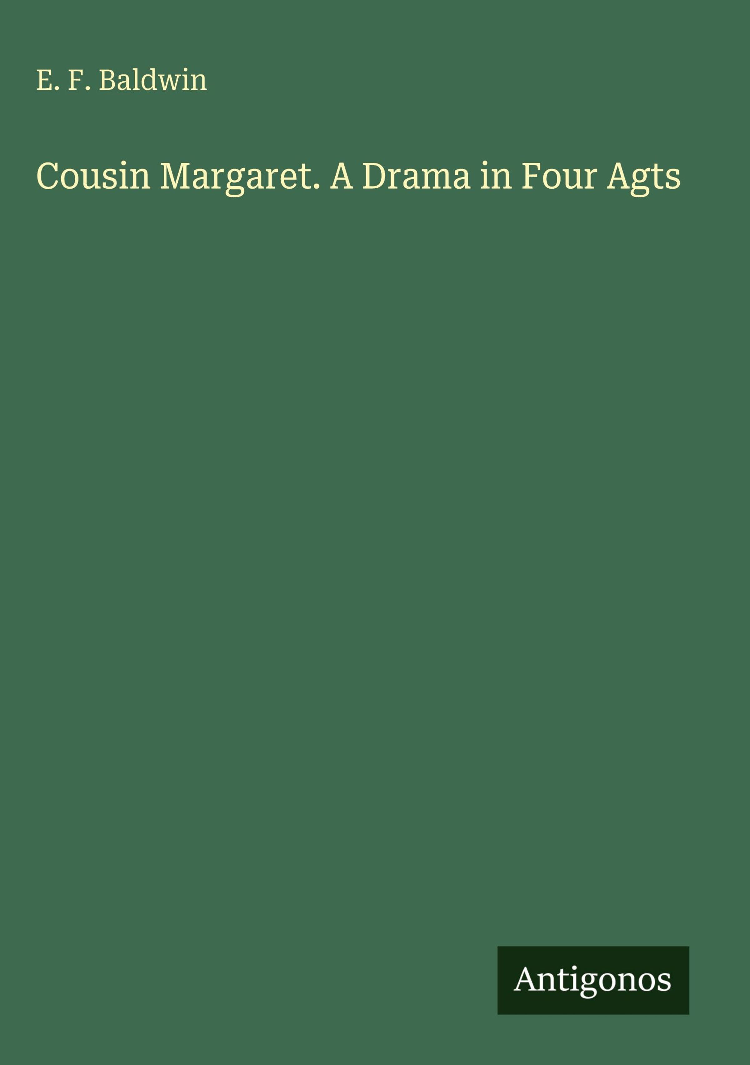 Text oben: "E. F. Baldwin". Mitte: "Cousin Margaret. A Drama in Four Acts". Unten rechts: kleines Rechteck mit "Antigonos"., Buch