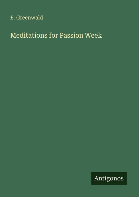 E. Greenwald: Meditations for Passion Week, Kartoniert / Broschiert