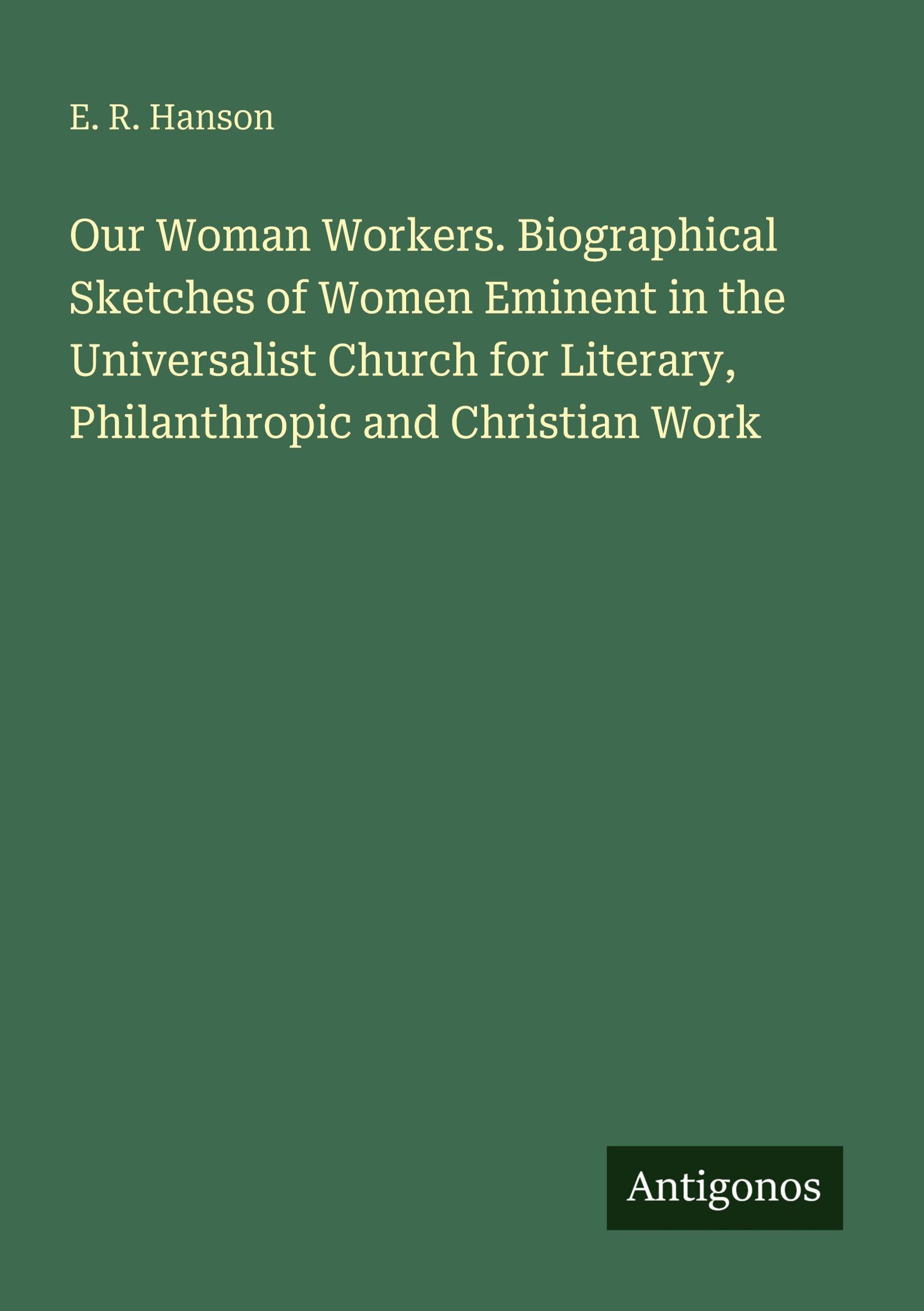 Our Woman Workers. Biographical Sketches of Women Eminent in the Universalist Church for Literary, Philanthropic and Christian Work