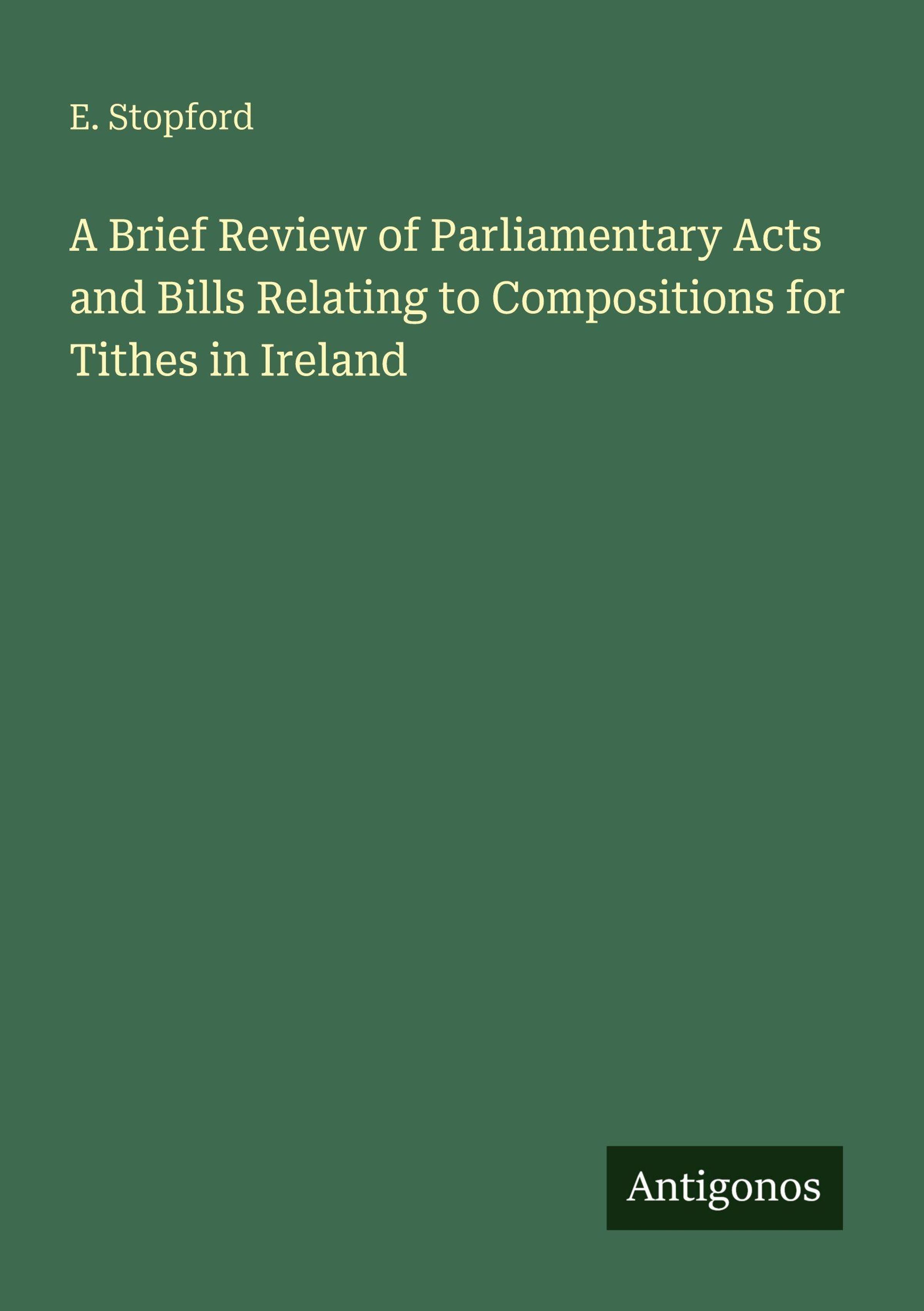 E. Stopford: A Brief Review of Parliamentary Acts and Bills Relating to Compositions for Tithes in Ireland, Kartoniert / Broschiert