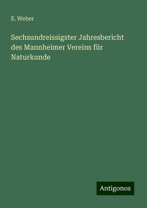 E. Weber: Weber, E: Sechsundreissigster Jahresbericht des Mannheimer V, Flexibler Einband