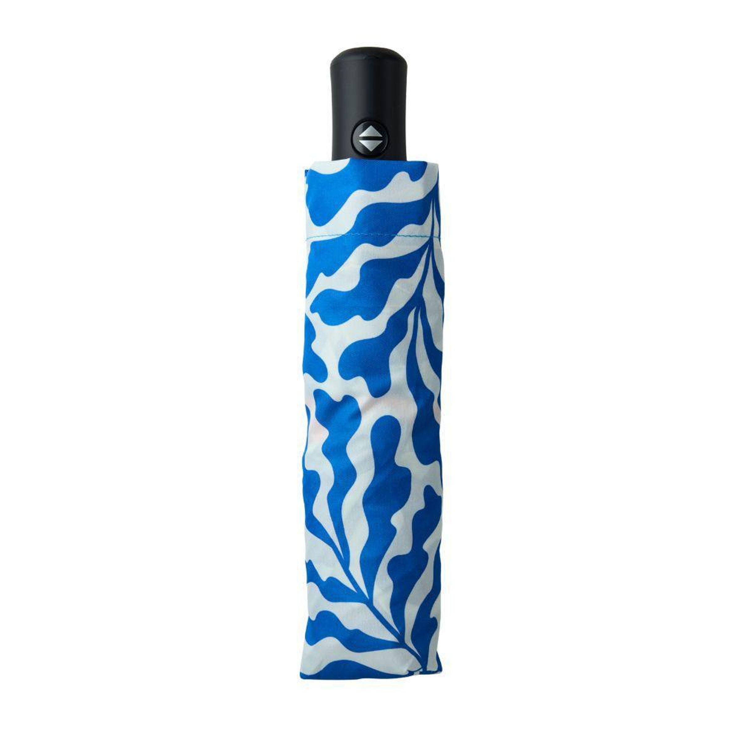 Ein Regenschirm mit blau-weißen wellenartigen Mustern in einer spiralförmigen Anordnung., Diverse