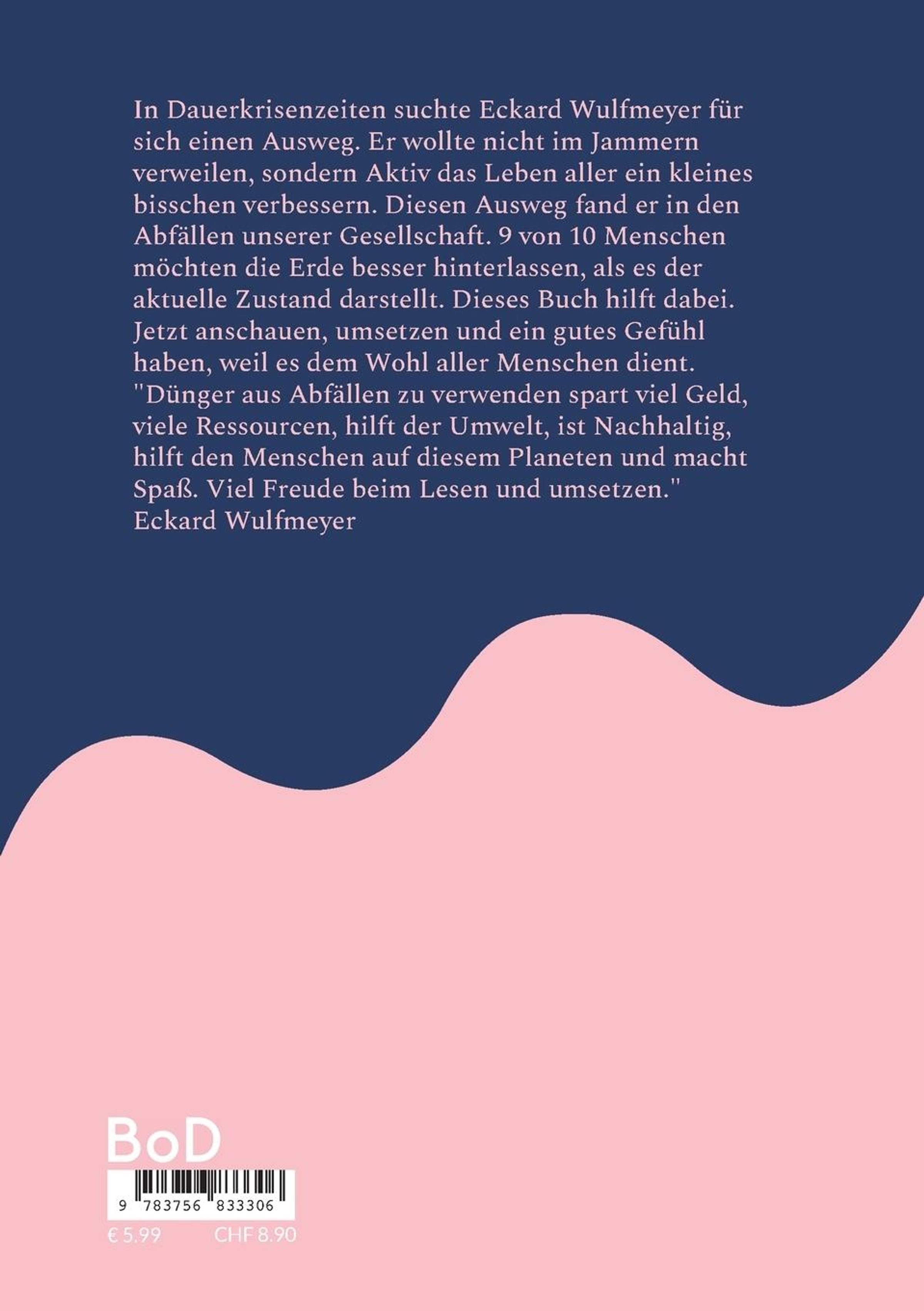 "Dünger aus Abfällen zu verwenden spart viel Geld, viele Ressourcen, hilft der Umwelt, ist Nachhaltig, hilft den Menschen auf diesem Planeten und macht Spaß. Viel Freude beim Lesen und umsetzen." (Eckard Wulfmeyer)