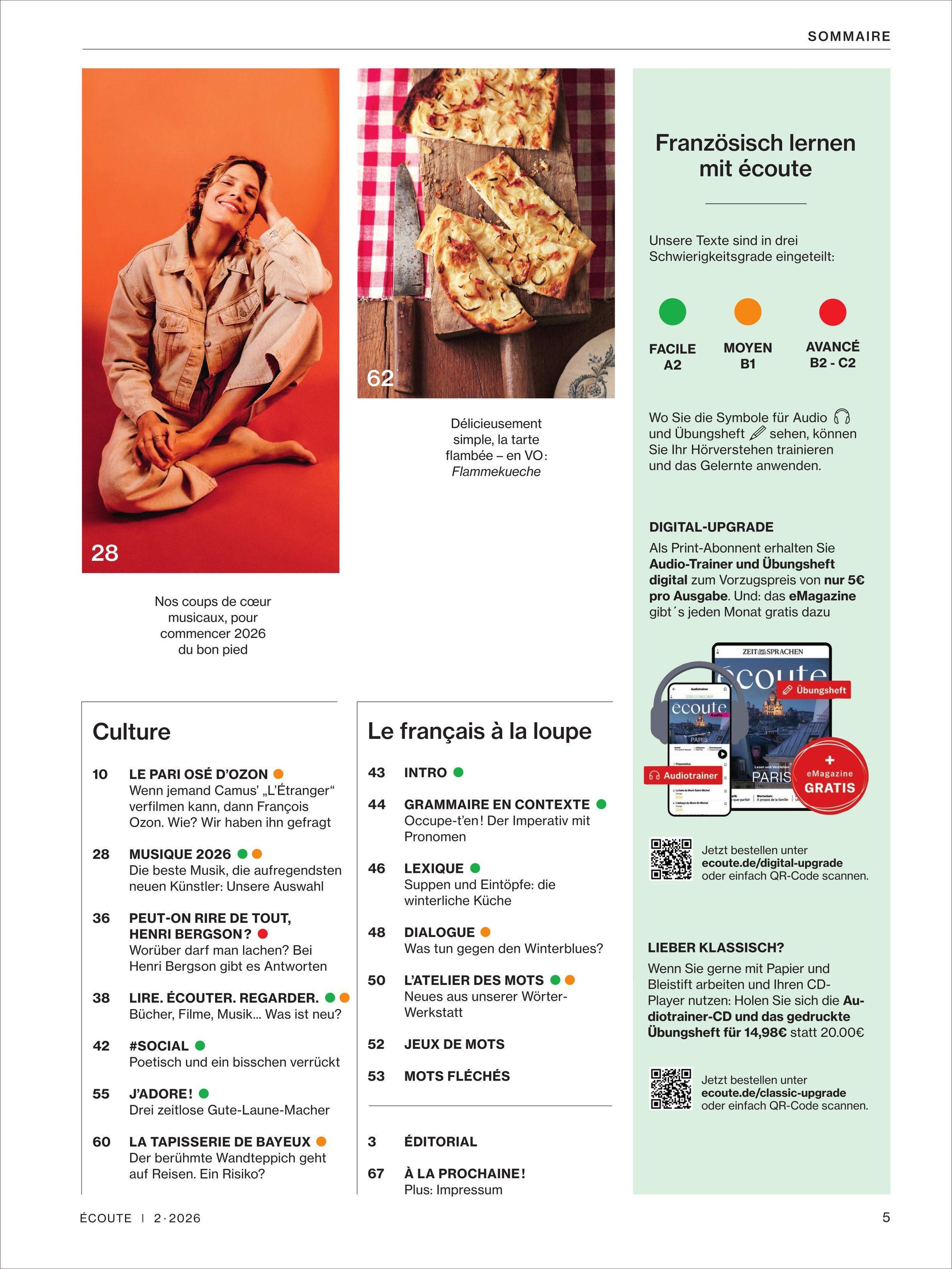 Erhalten Sie spannende Berichte und Reportagen über La vie belle in Frankreich und der französischsprachigen Welt. Ganz nebenbei verbessern Sie mit unseren vielfältigen Sprachübungen Ihren französischen Wortschatz, die Grammatik und Ihre Aussprache.