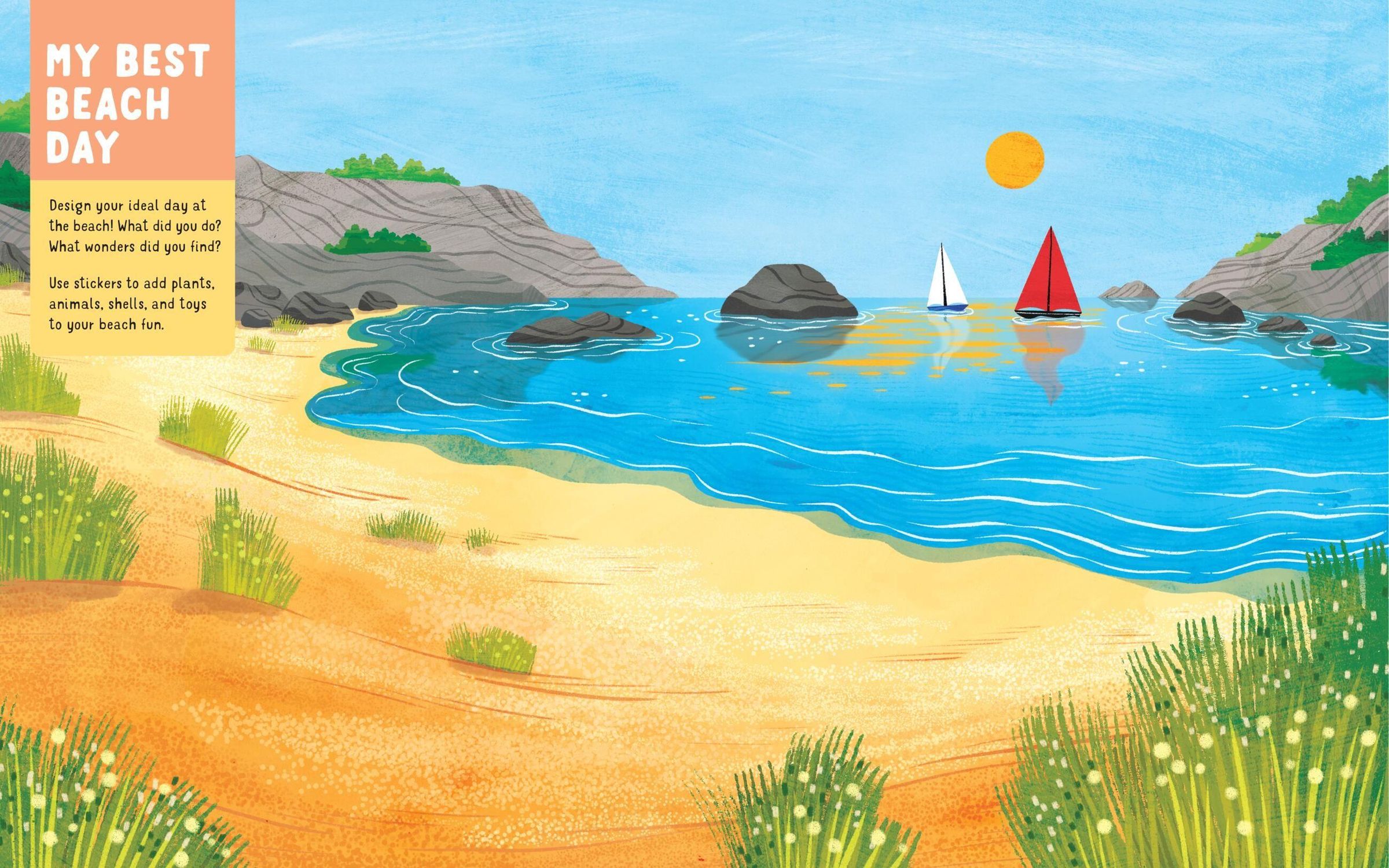 - Create a day at the beach with stickers of umbrellas, sandcastles, beach towels, and more.