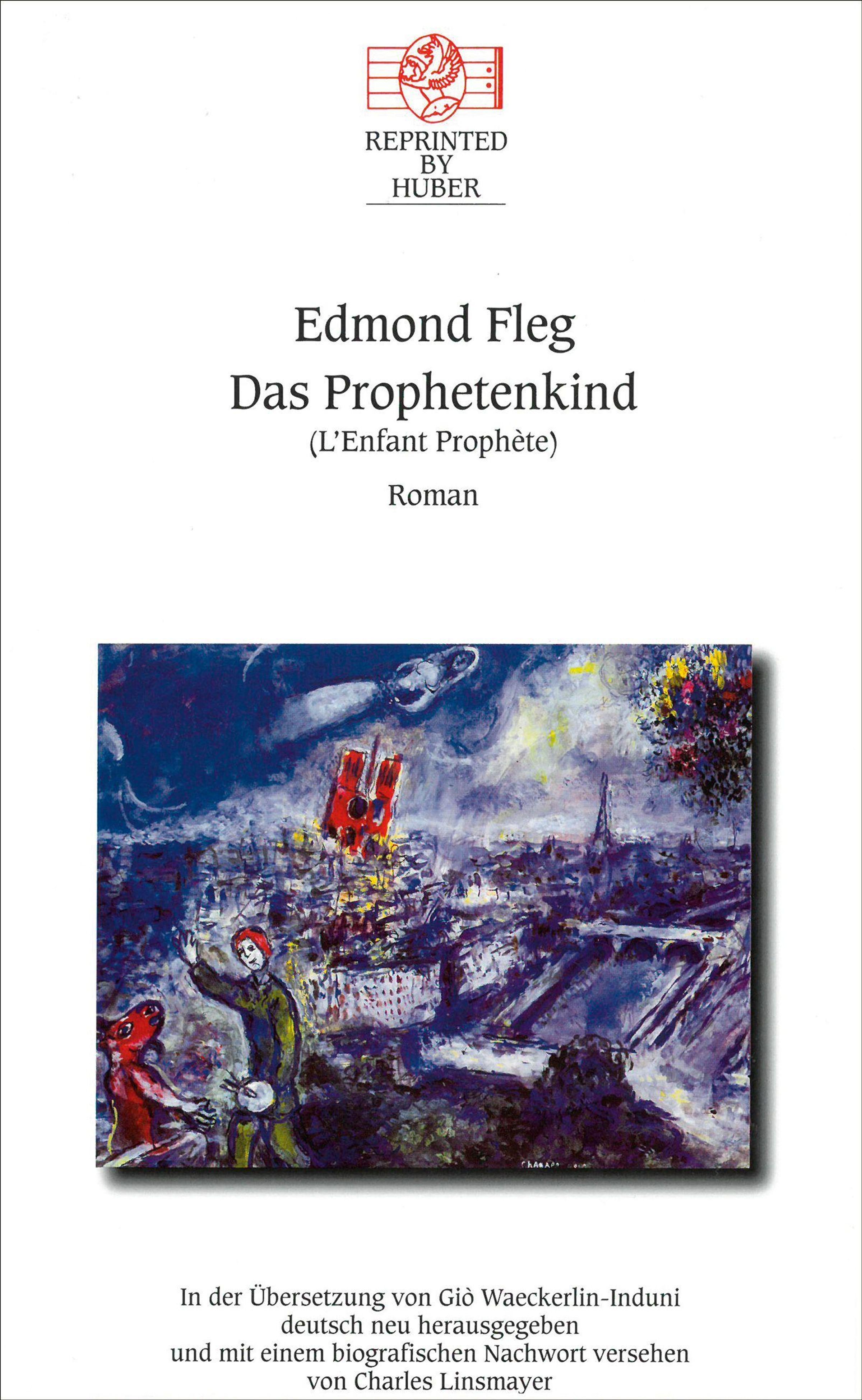 "Edmond Fleg, Das Prophetenkind. Illustration mit bunter Stadtszene, einer Figur und einem roten Tier.", Buch