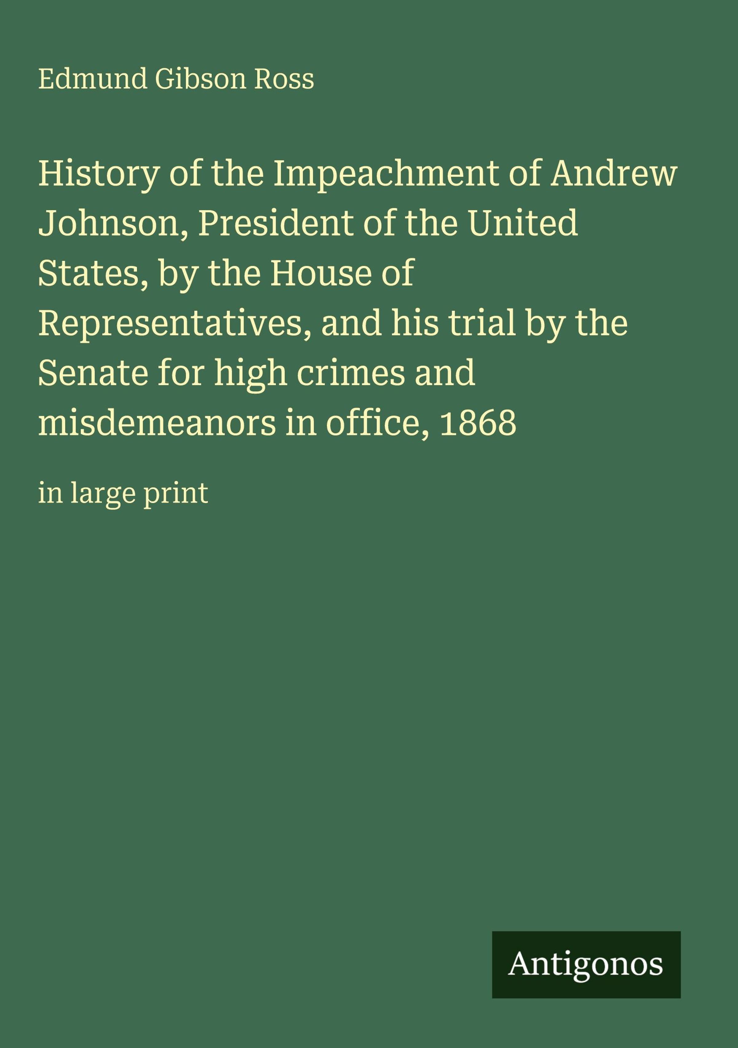 History of the Impeachment of Andrew Johnson, President of the United States, by the House of Representatives, and his trial by the Senate for high crimes and misdemeanors in office, 1868