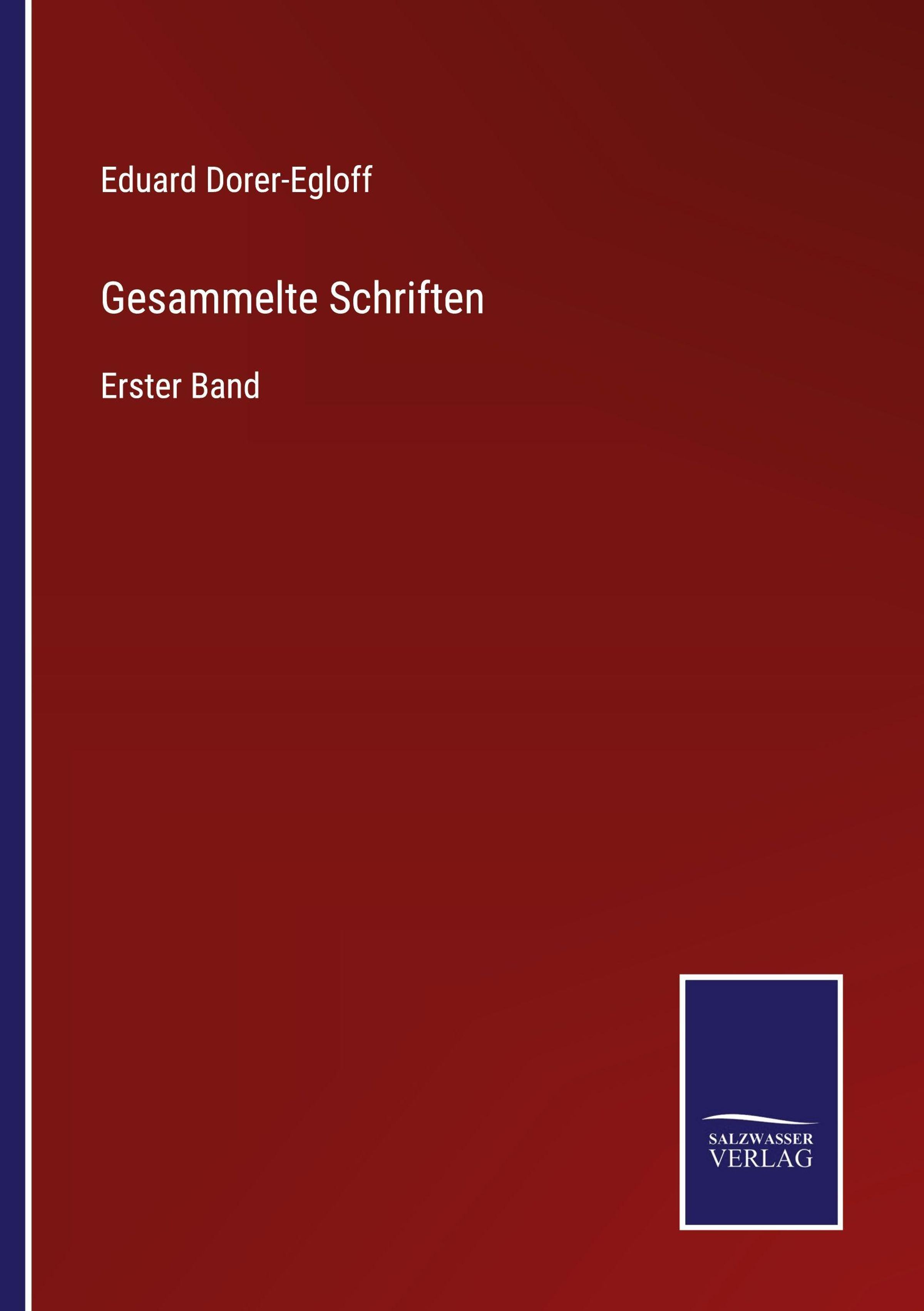 "Eduard Dorer-Egloff, Gesammelte Schriften, Erster Band." Dunkelrote Fläche mit blau-weißem Verlag-Logo unten., Buch