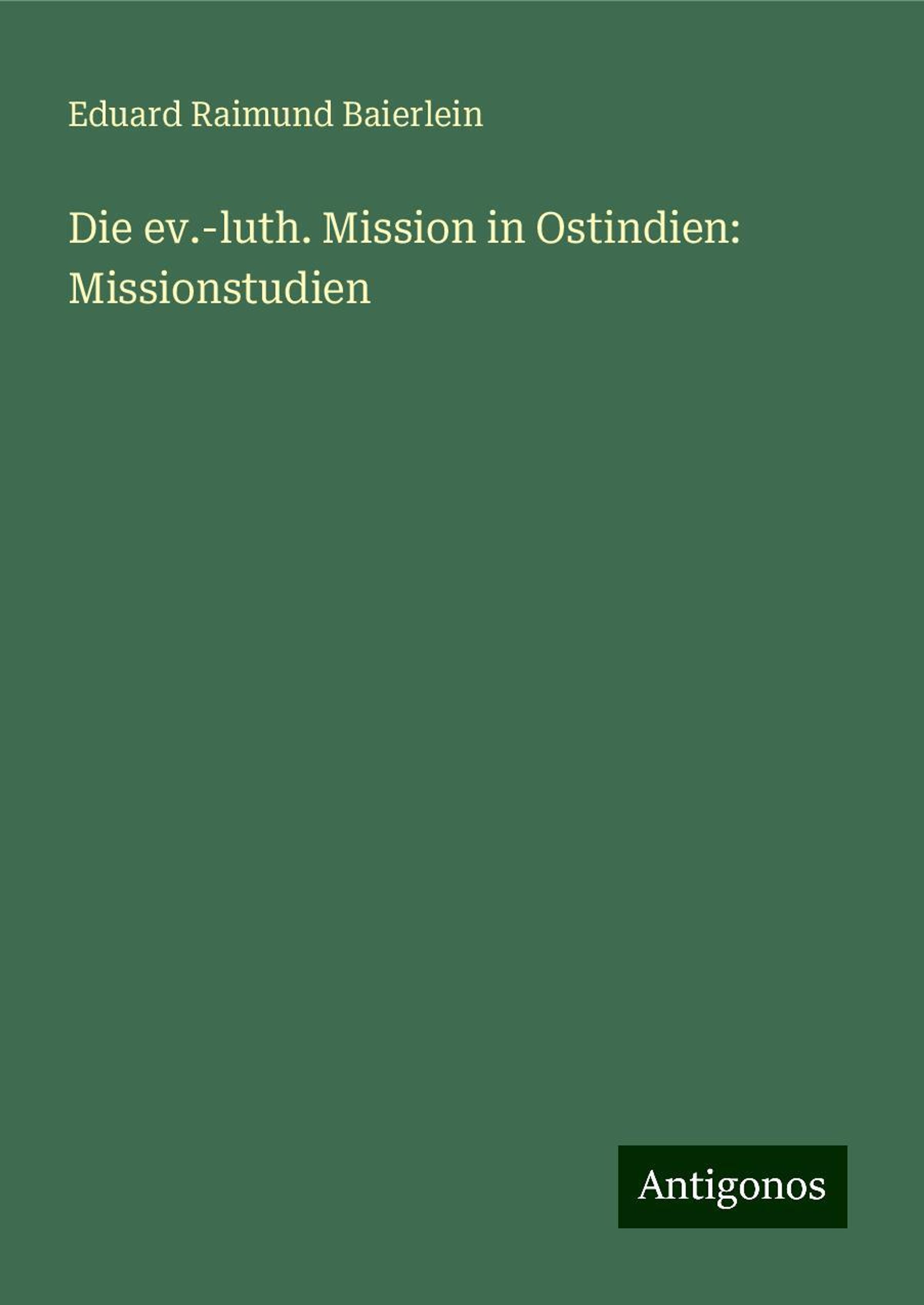 Baierlein, E: Die ev.-luth. Mission in Ostindien: Missionstu