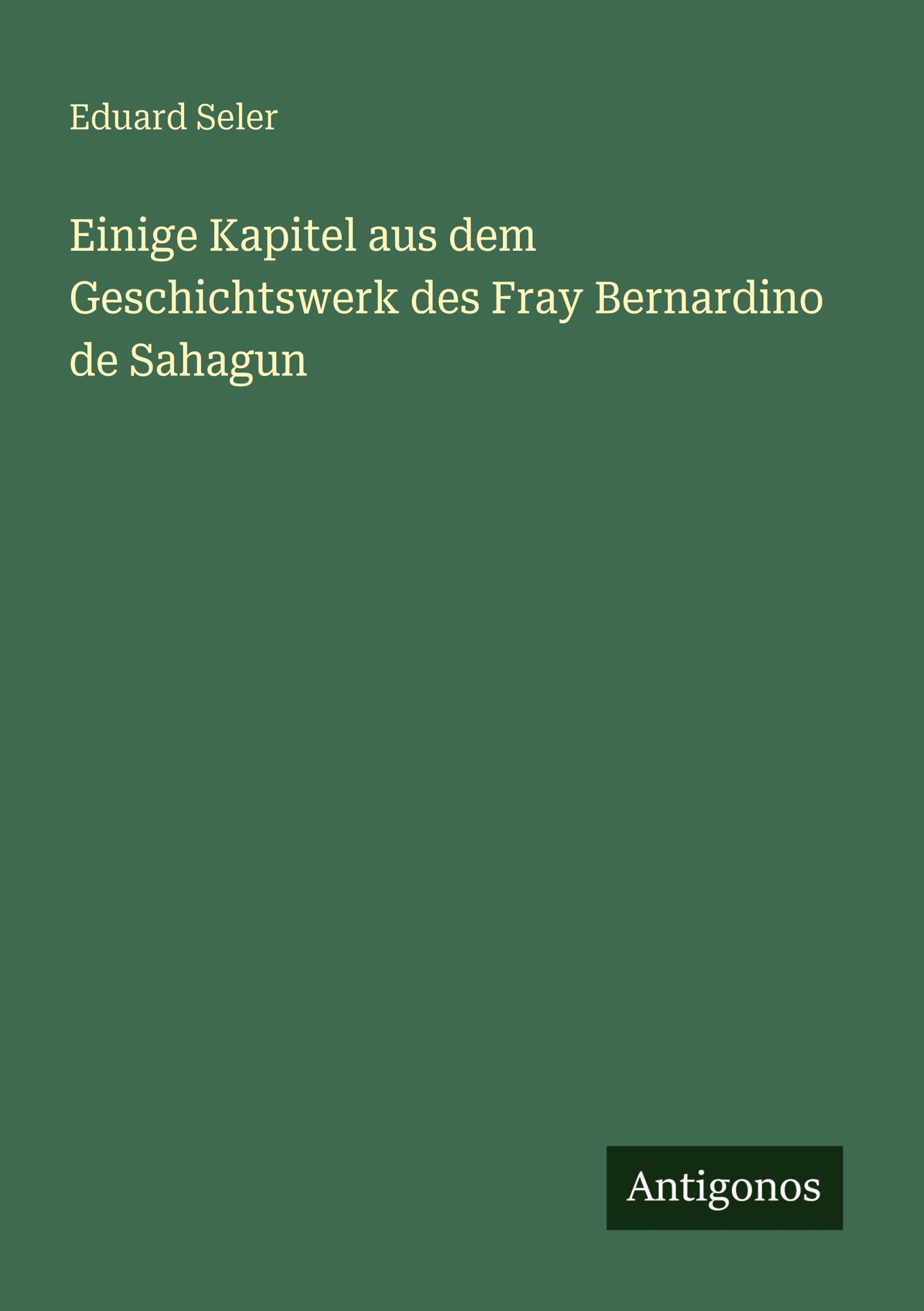Eduard Seler: Einige Kapitel aus dem Geschichtswerk des Fray Bernardino de Sahagun, Kartoniert / Broschiert