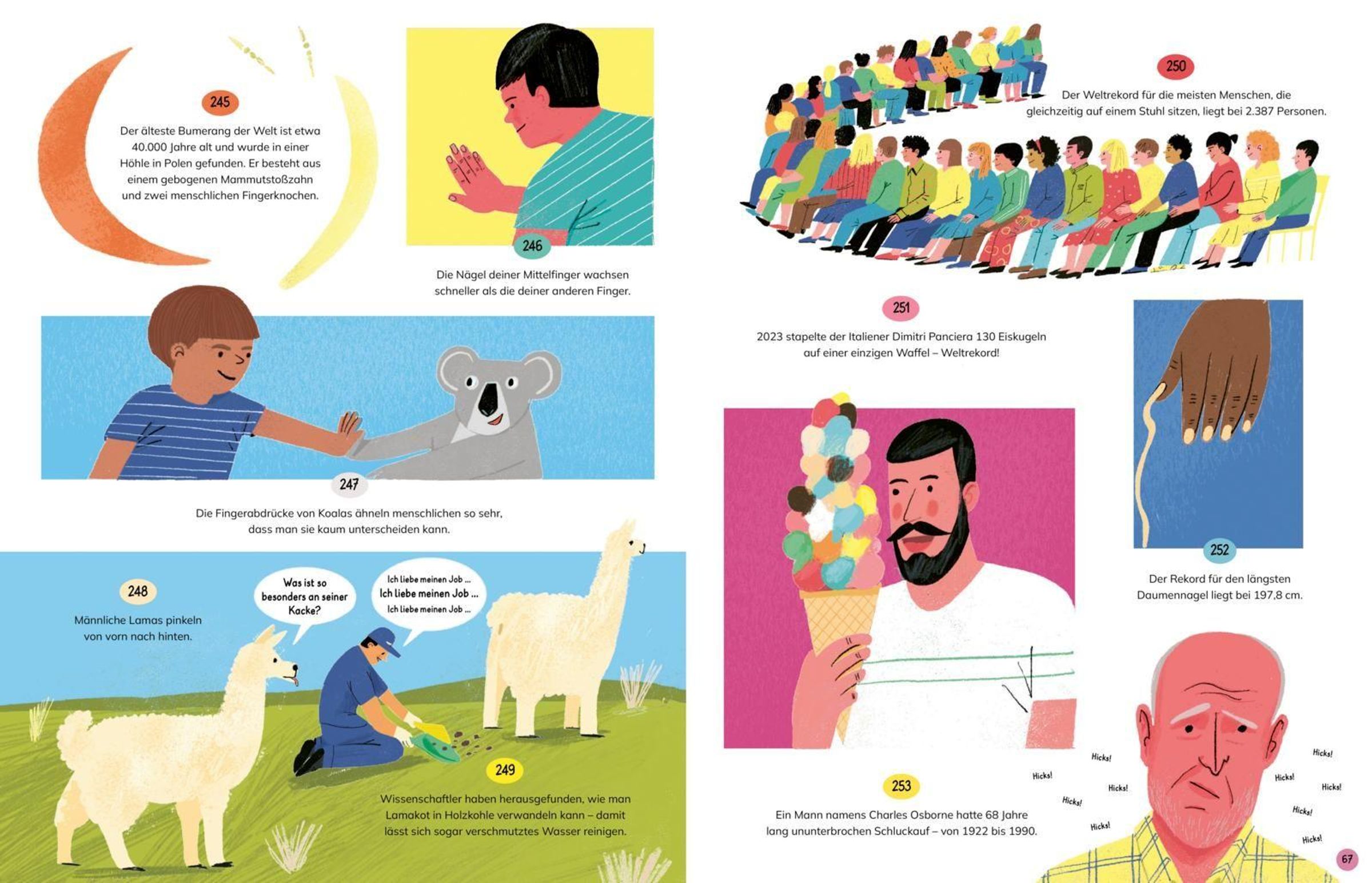 Von astronomischen Wundern über erstaunliches Tierverhalten bis zu skurrilen historischen Ereignissen - die Themenvielfalt ist riesig. Der humorvolle, kindgerechte Ton macht komplexe Zusammenhänge leicht verständlich, während liebevolle Illustrationen jede Entdeckung visuell zum Leben erwecken. 365 kurze Wissenseinträge -ein Fakt pro Tag (ideal zum täglichen Lesen) Abwechslungsreiche Wissensvermittlung: Wissenschaft, Natur, Tiere, Weltall, Geschichte, Kultur, Rekorde, kuriose Fakten** Für wissbegierige Kinder ab 5 Jahren** (zum Vorlesen & ersten Selberlesen) und Familien** Farbenfroh illustriert:** Jeder Fakt wird durch ansprechende Bilder begleitet** Perfekt als tägliches Vorlese-Ritual:** Kurze, eigenständige Einträge laden zum Schmökern vor dem Schlafengehen einEin Buch, das Neugier weckt und jeden Tag ein kleines Wunder bereithält - für wissbegierige Kinder und staunende Familien.