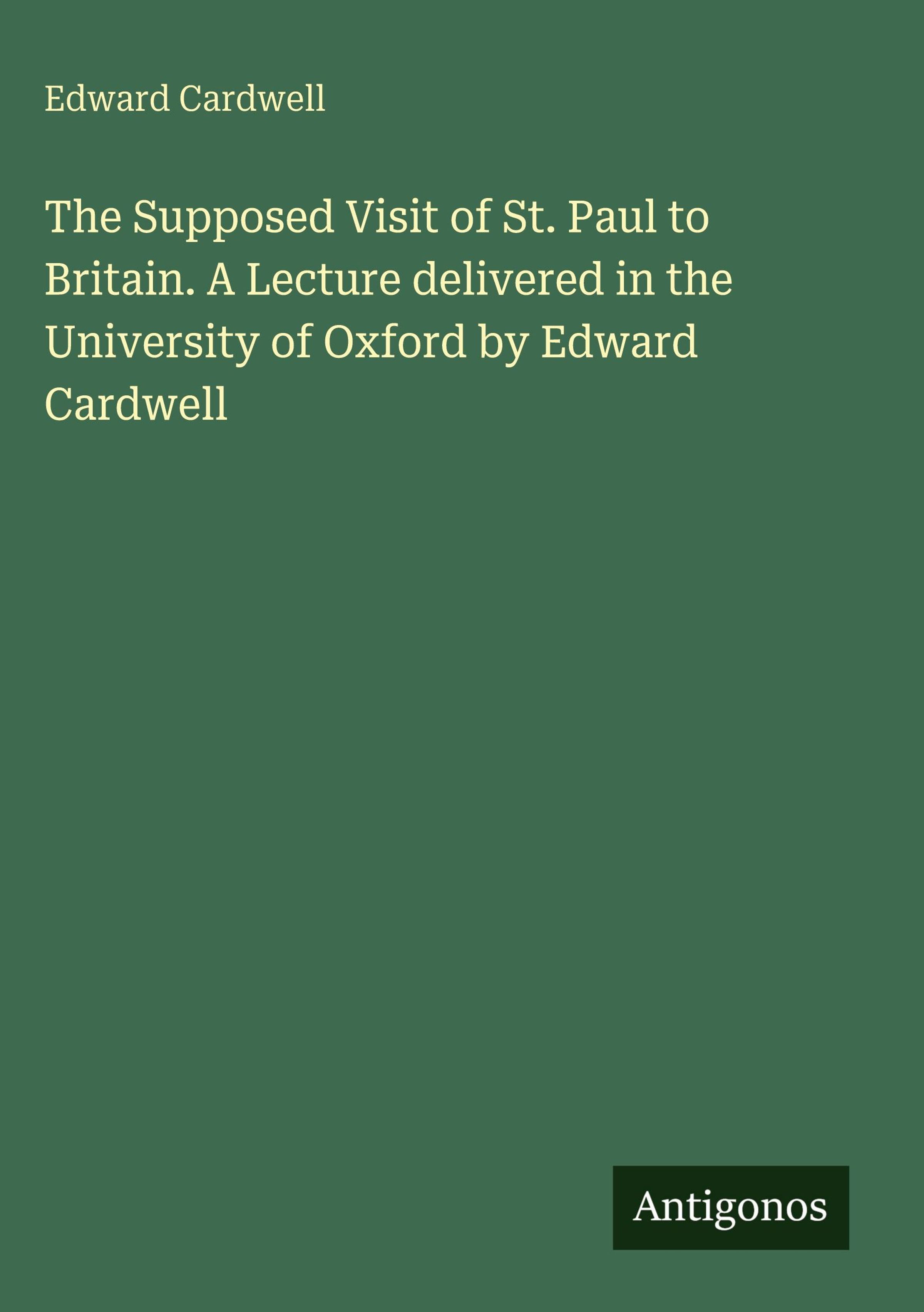 Weitere Ausgaben von The Supposed Visit of St. Paul to Britain. A Lecture delivered in the University of Oxford by Edward Cardwell |
