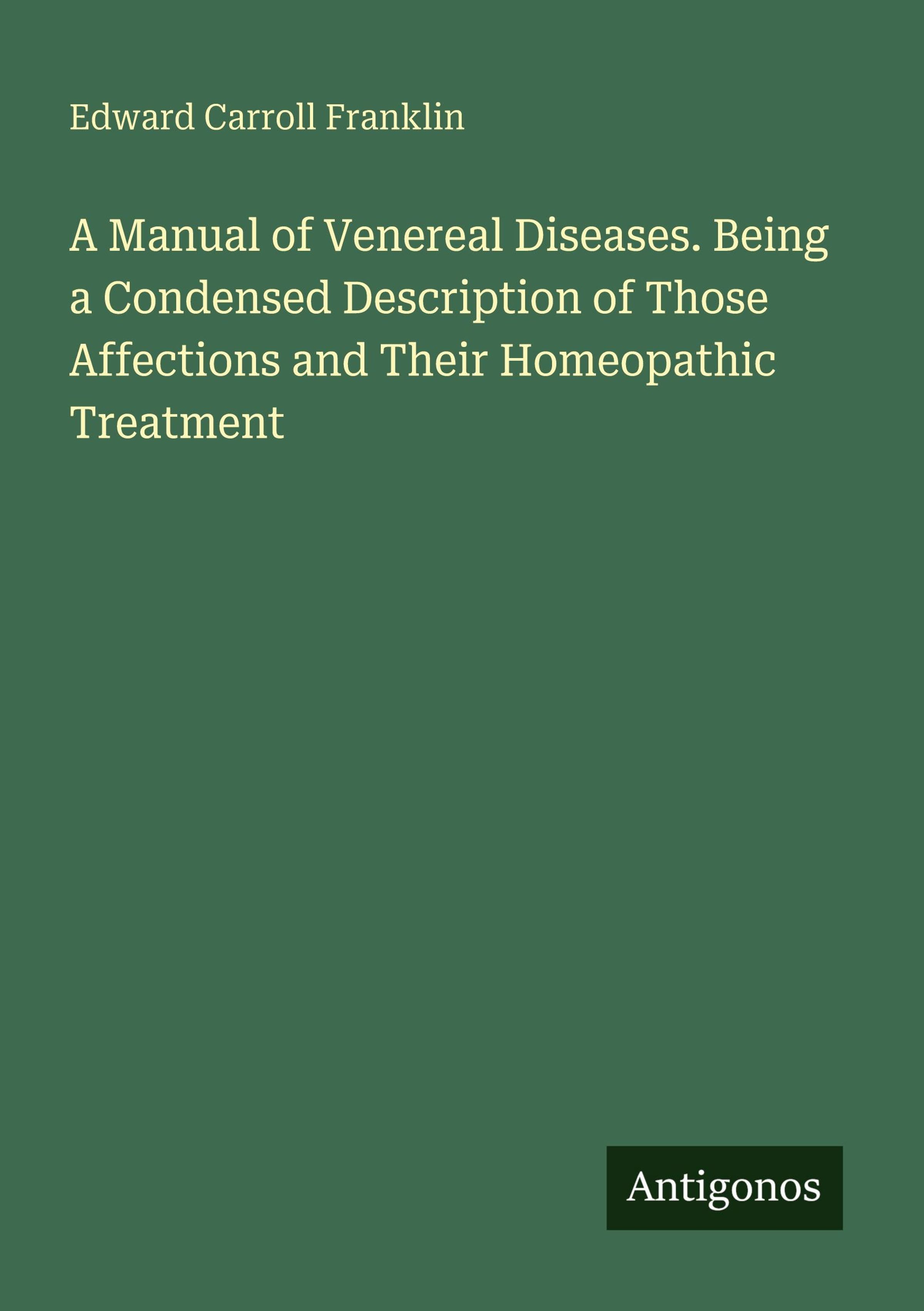 Edward Carroll FranklinA Manual of Venereal diseases : being a Condensed Description of Those Affections and their Homoeopathic TreatmentBuchAktueller Preis: EUR 29,90